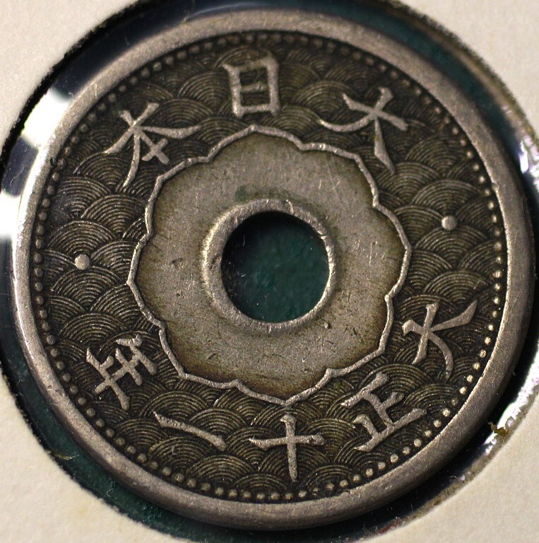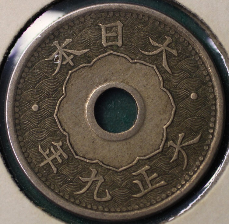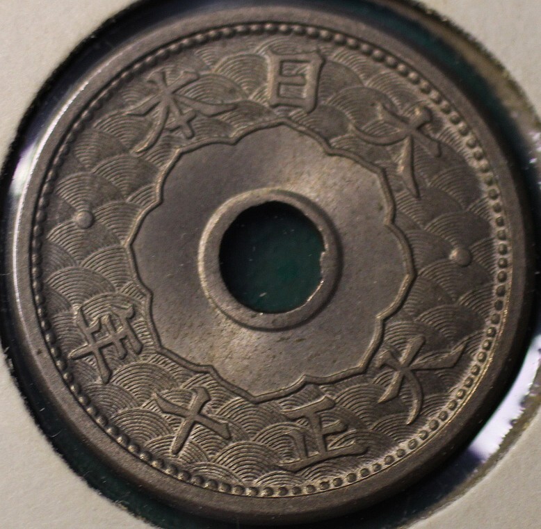 菊紋小型五銭白銅貨です。大正9年・10年・11年12年の4枚まとめ売りです。