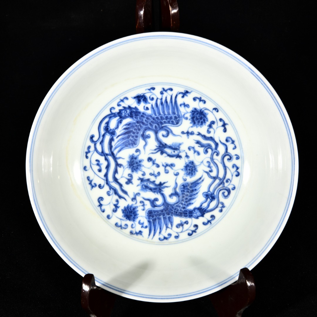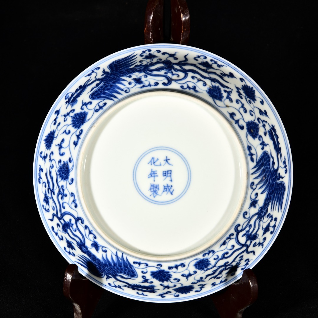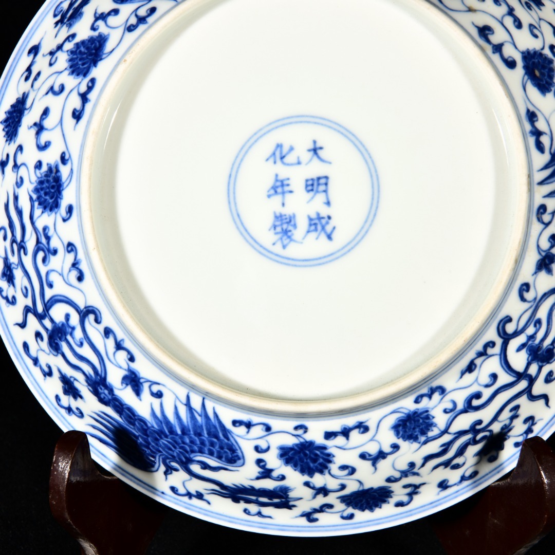 商品名 ■TX221■大明成化年制款 青花纏枝蓮穿鳳凰紋 盤 古物 収蔵品 古陶磁器■