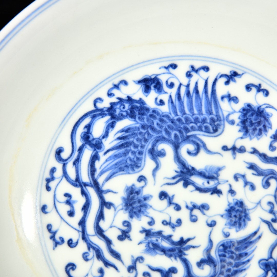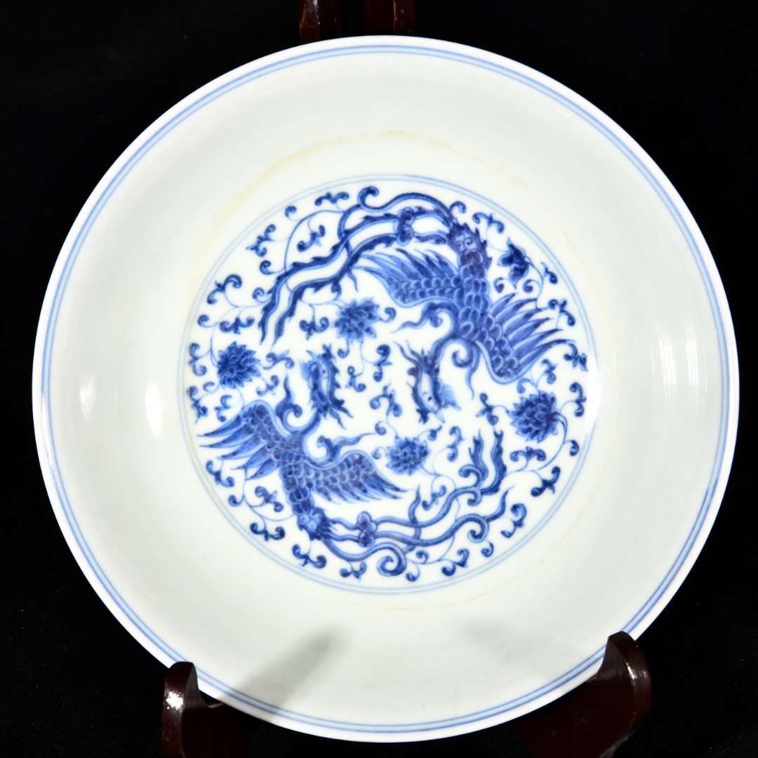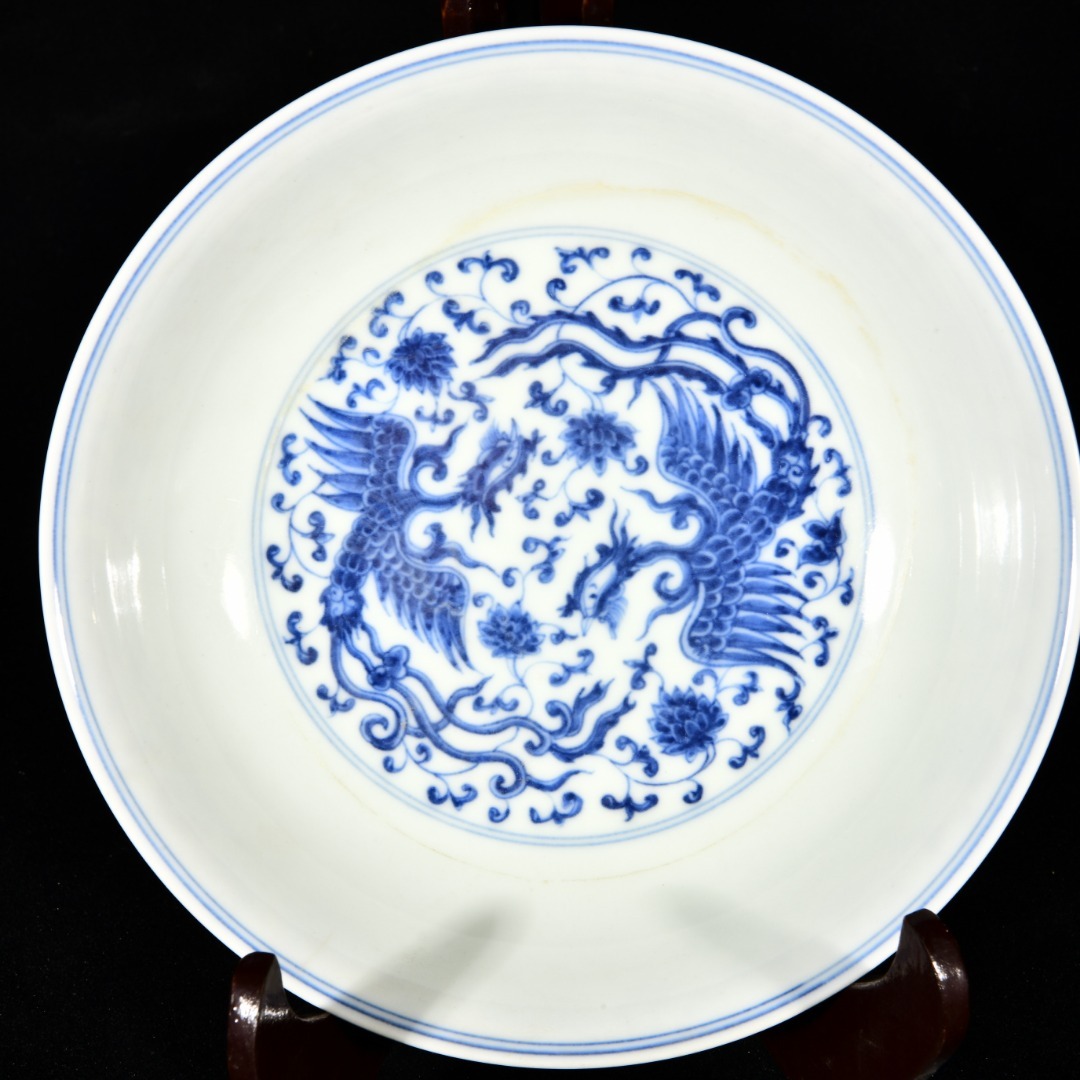 商品名 ■TX221■大明成化年制款 青花纏枝蓮穿鳳凰紋 盤 古物 収蔵品 古陶磁器■