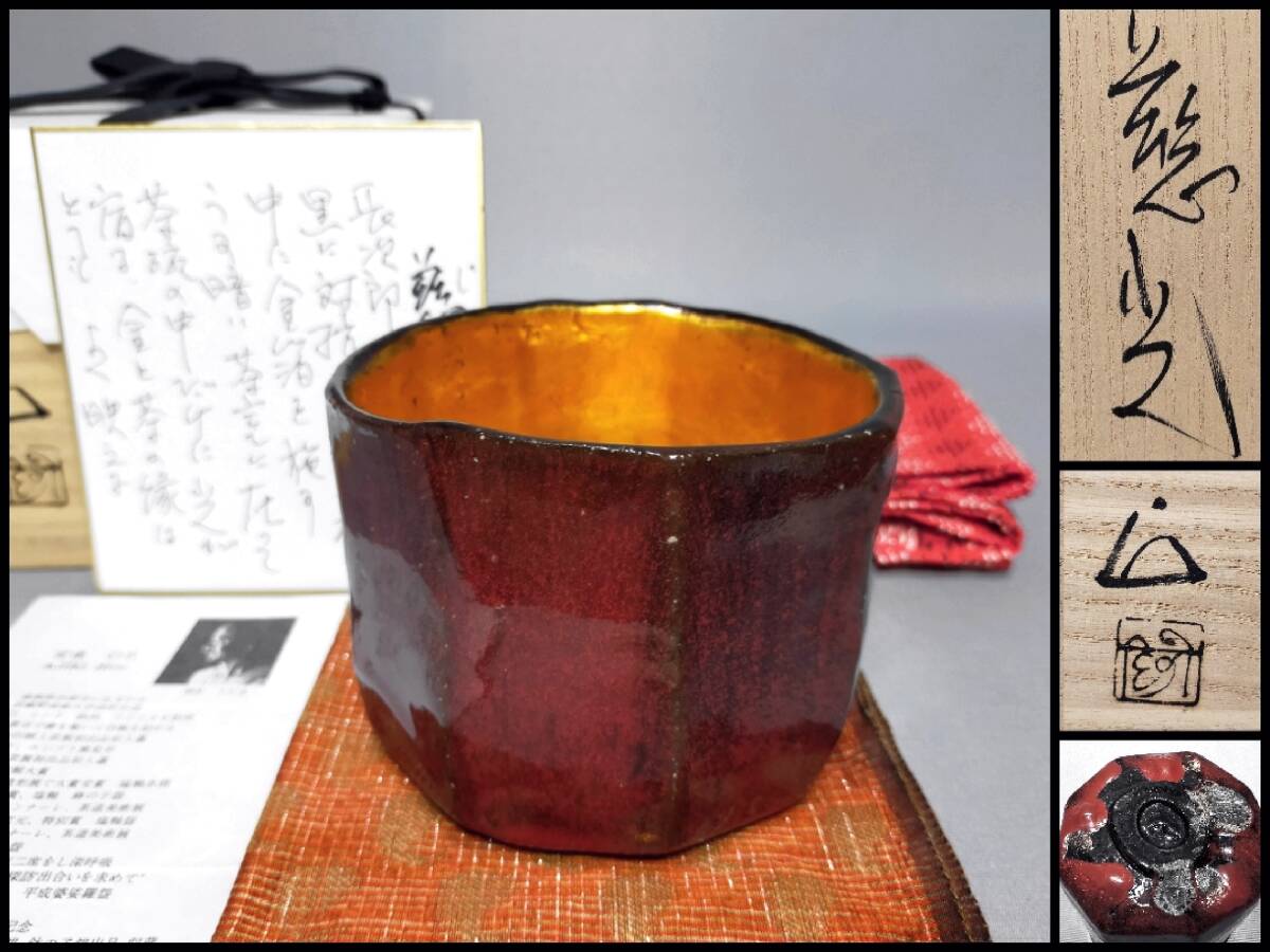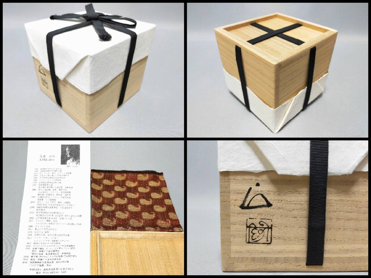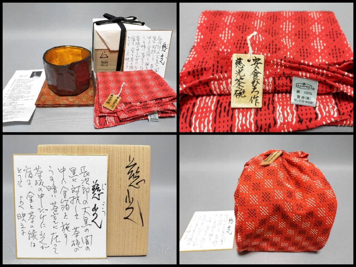 IH09 逸品 茶碗 安食ひろ 造 塩釉茶碗 銘:慈光 栞・布・共箱 色紙書き・共札・外風呂敷 茶道具 現代アート
