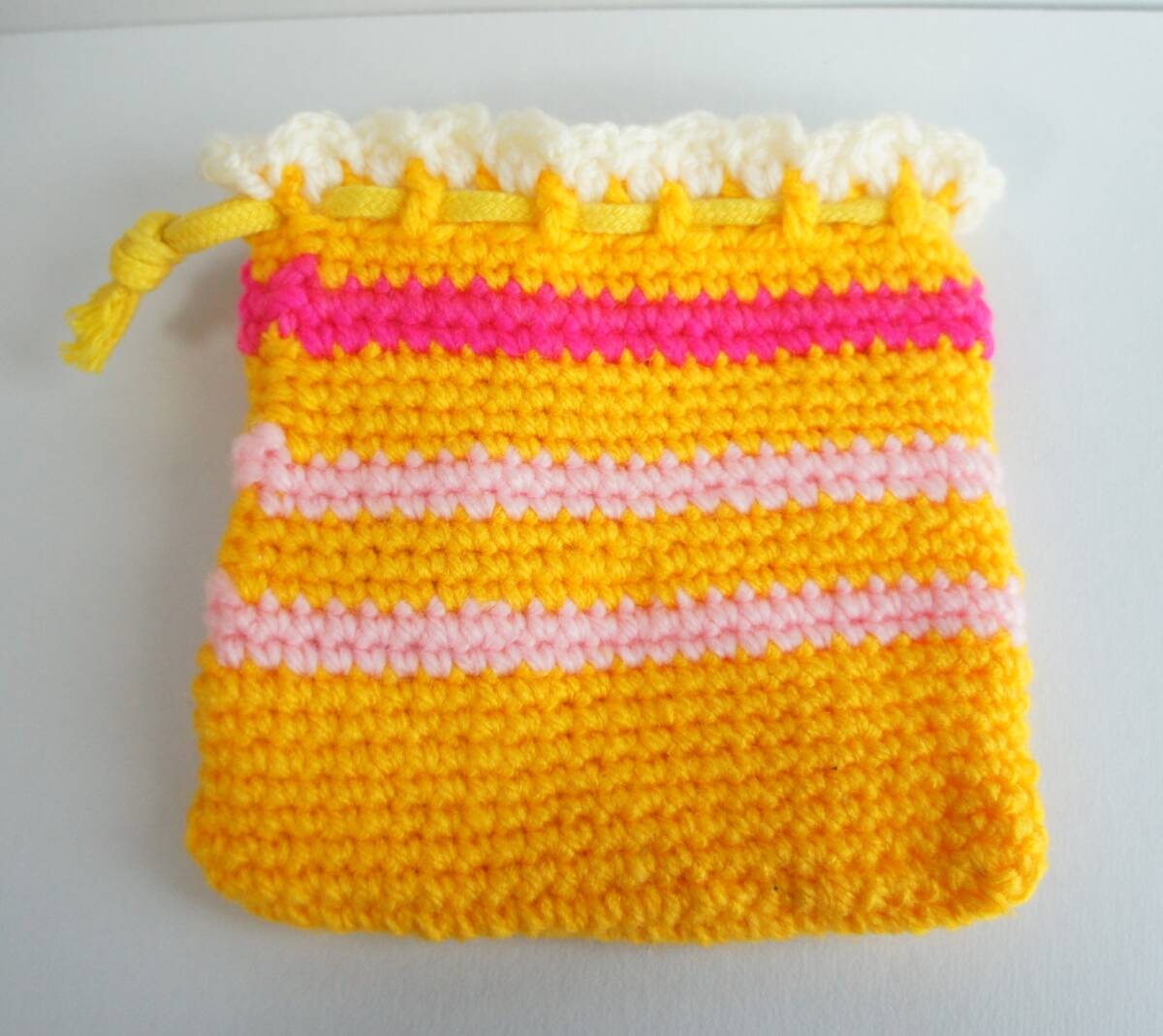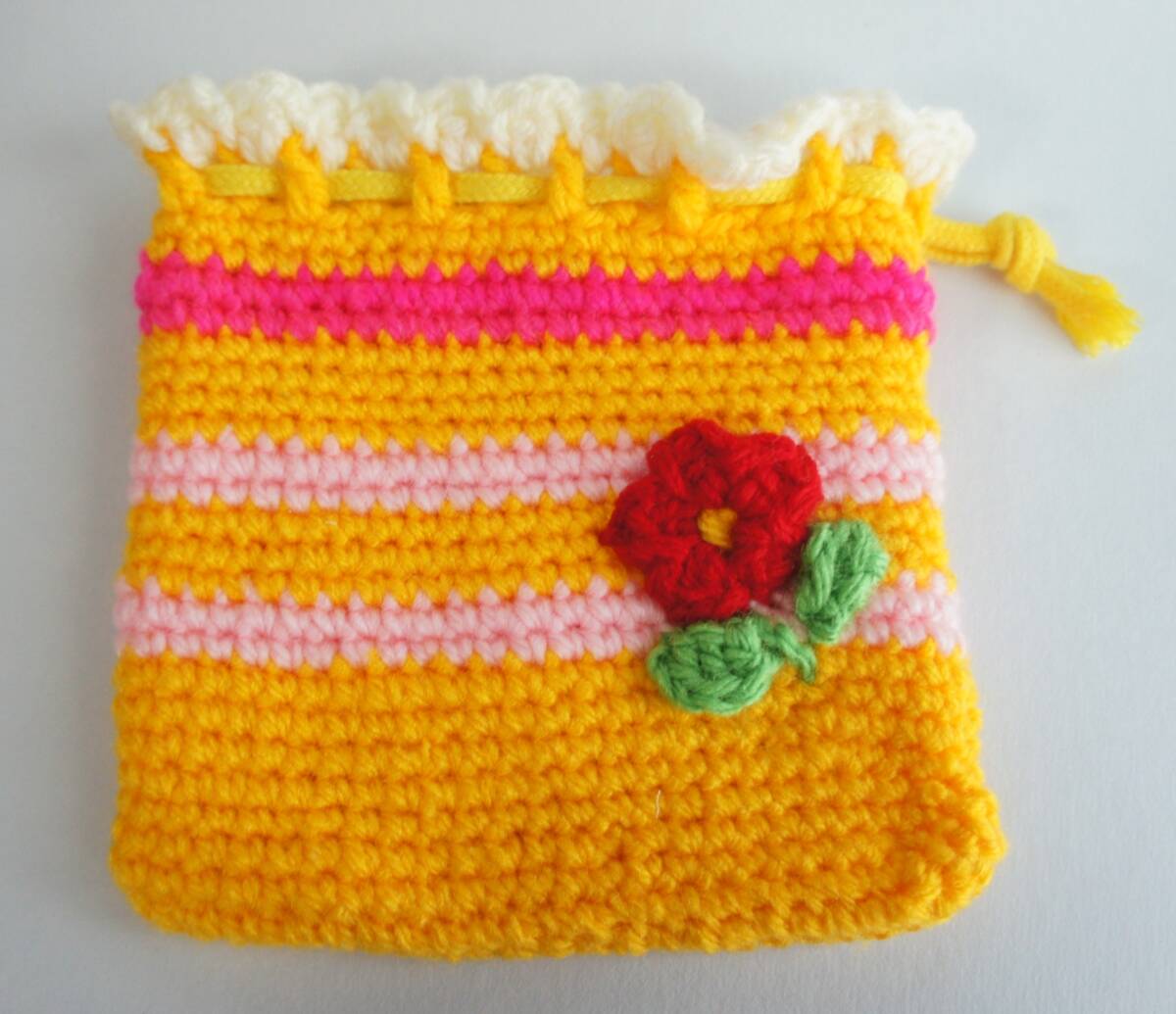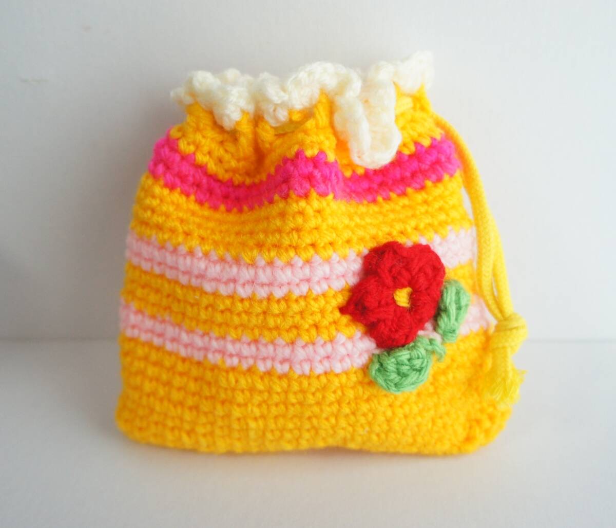 ハンドメイド 巾着 毛糸 かぎ針編み 手編み お花