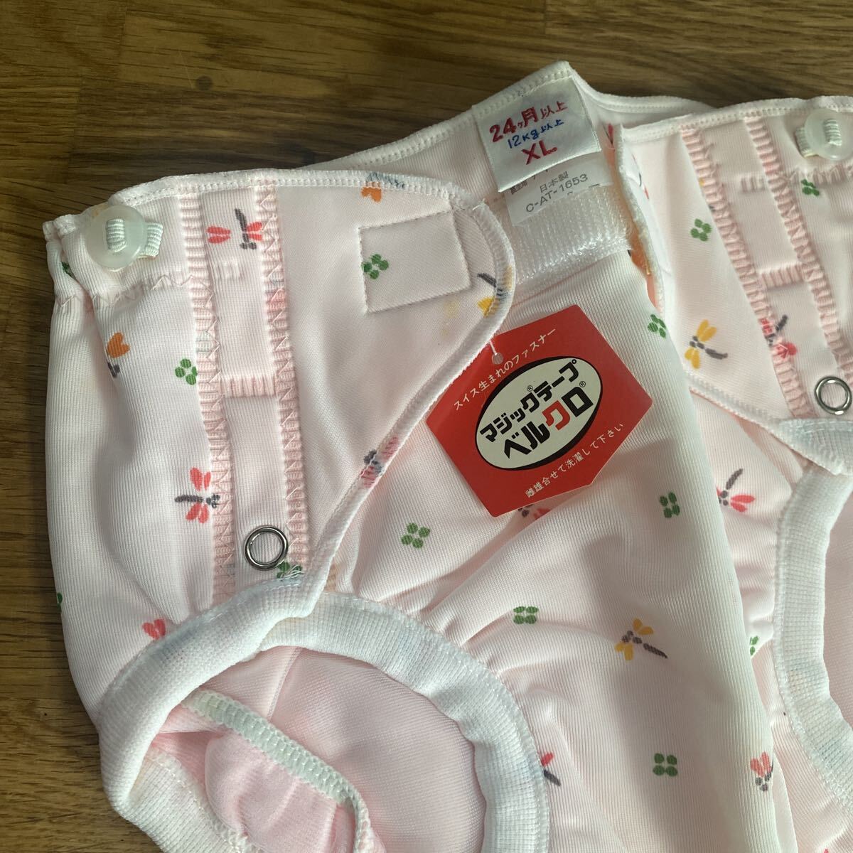 背部のゴム付近に薄シミ、またゴムは経年のため伸び気味だと思います。
