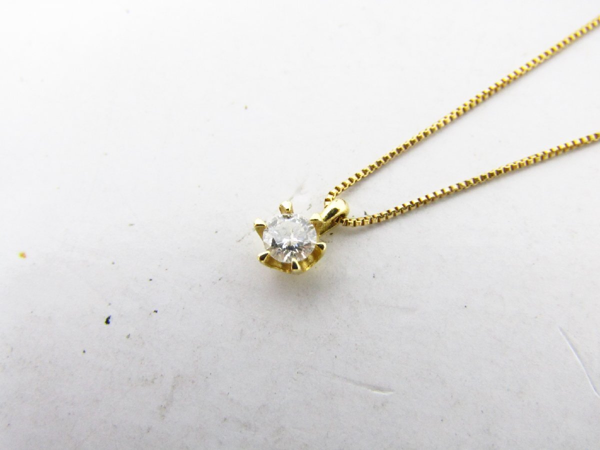 ※こちらは一般のお客様から買取をした中古商品です。 【状態】 若干のスレキズがございます。 (※掲載写真をご参考下さいませ。) 【サイズ】 総重量:約1.2g ネックレス長さ:約43cm ダイヤモンド:0.10ct(ダイヤモンドセンサー反応有) | |||||||