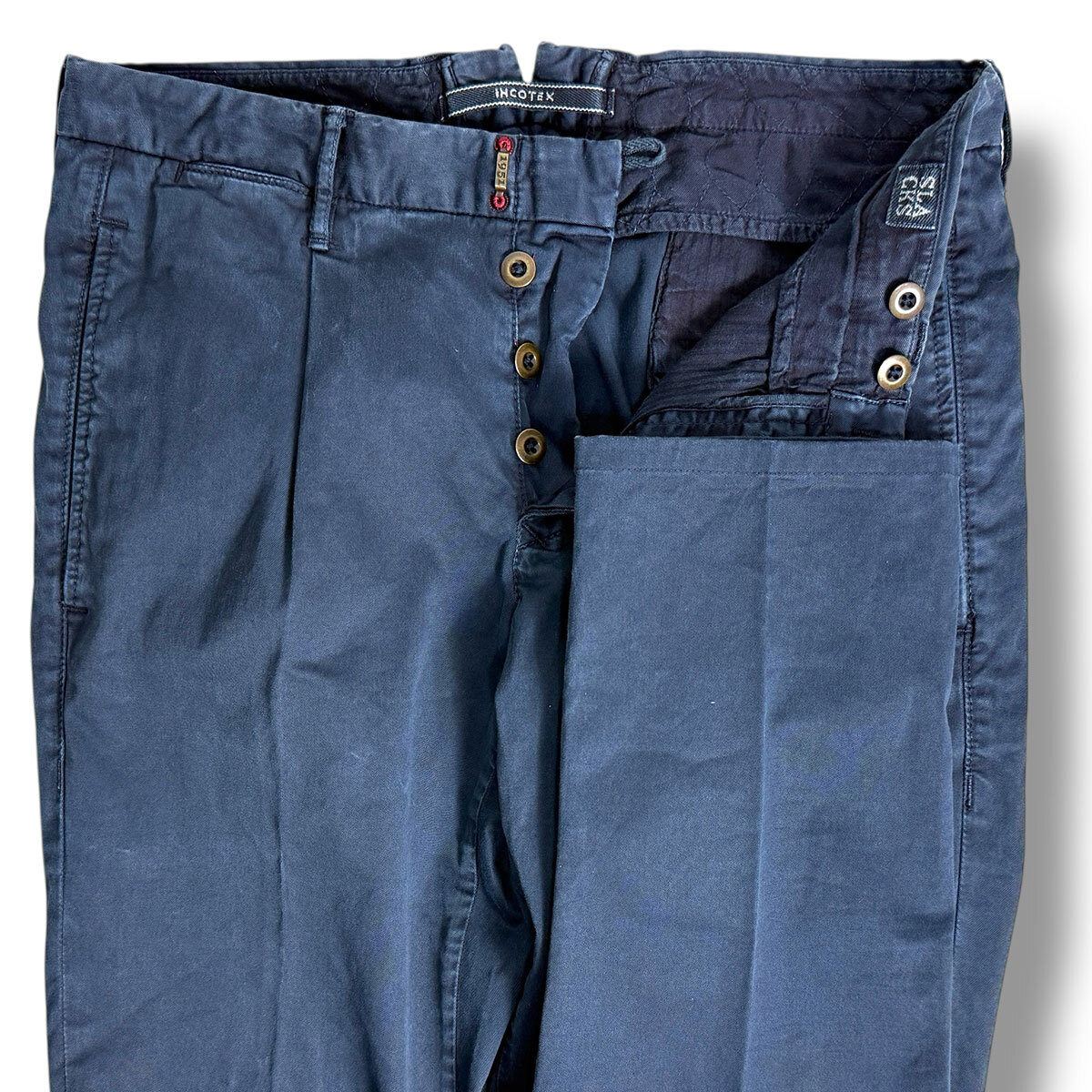 J7304 美品 インコテックススラックス 1ST694 600型 1プリーツガーメントダイパンツ ネイビー 31 INCOTEX SLACKS