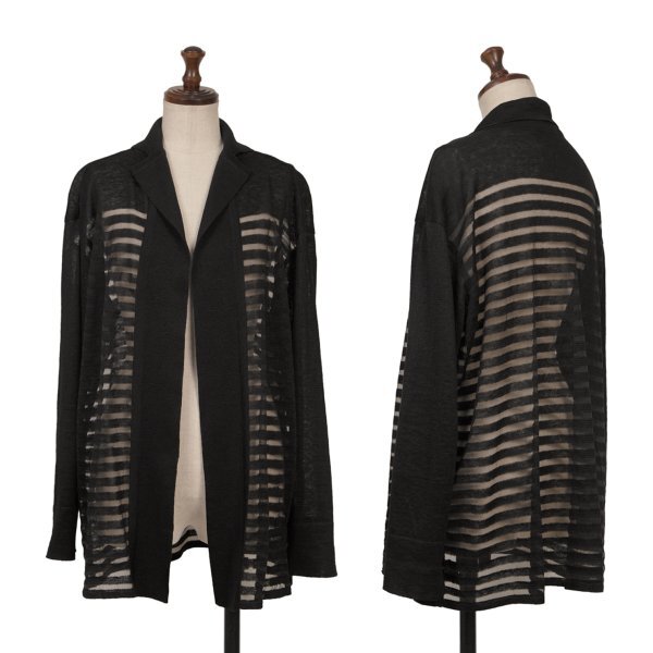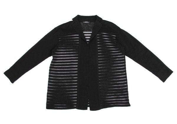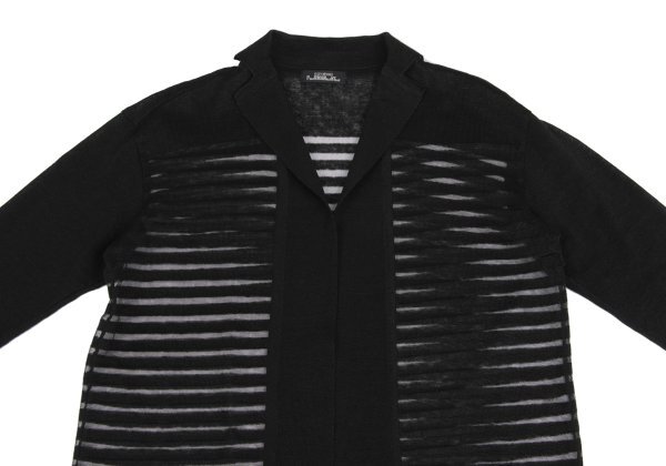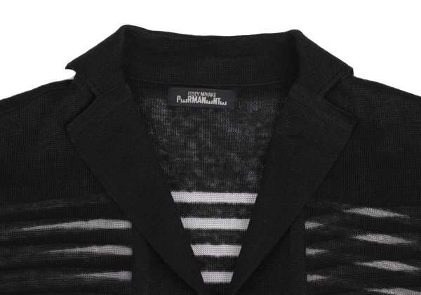 | イッセイミヤケペルマネンテISSEY MIYAKE PERMANENTE ボーダーシアーボタンレスジャケット 黒M位 |