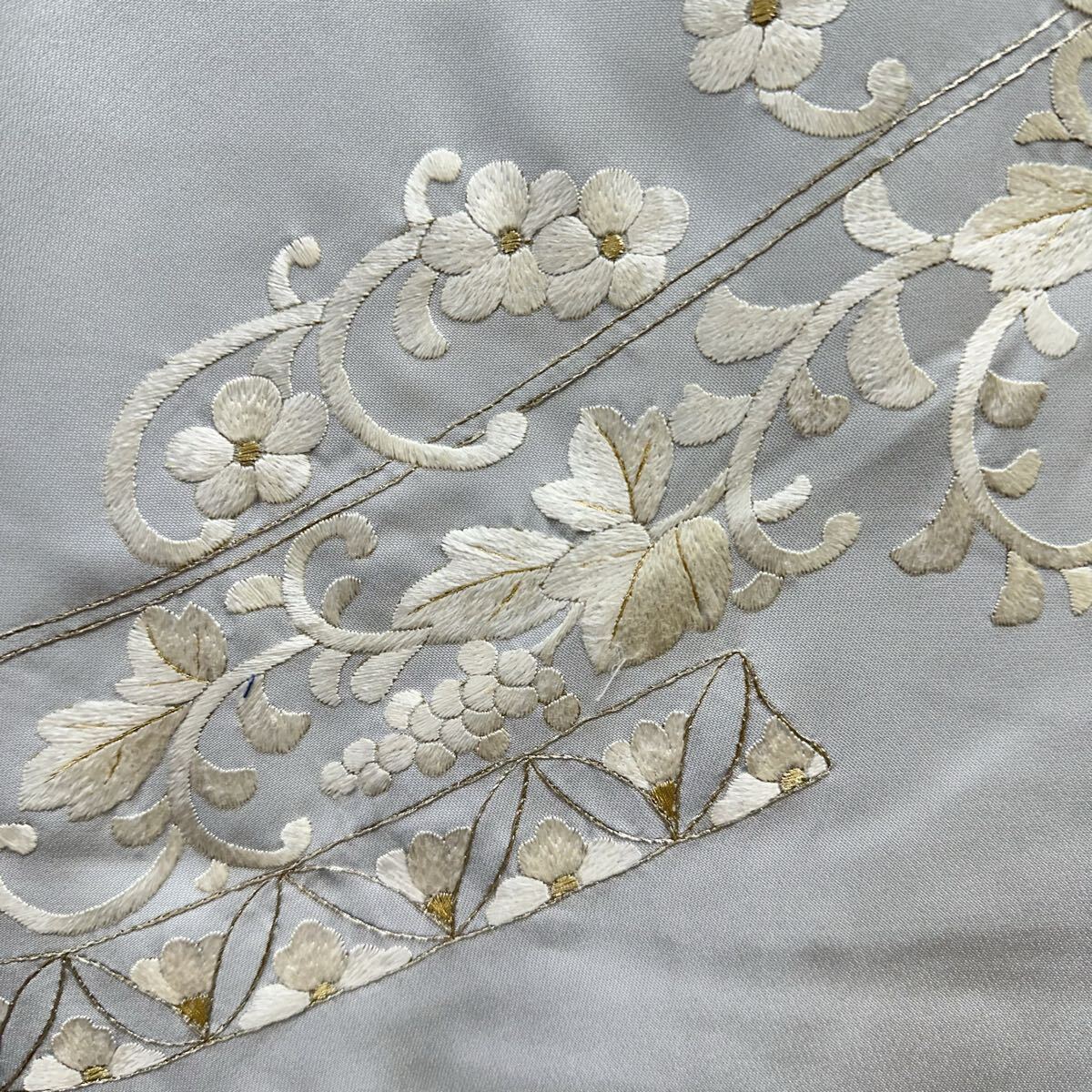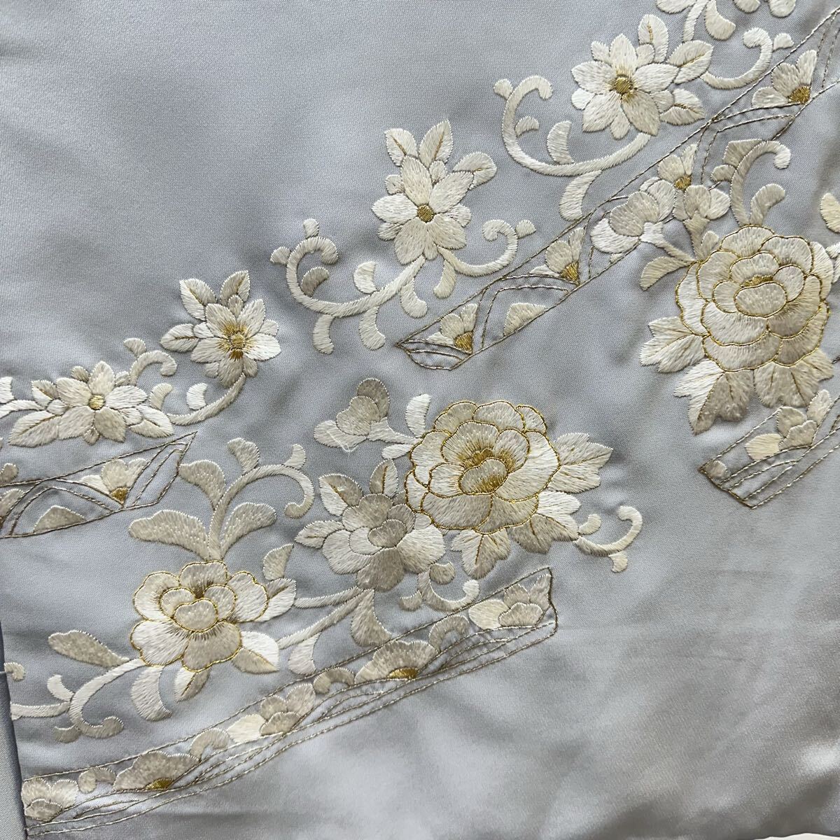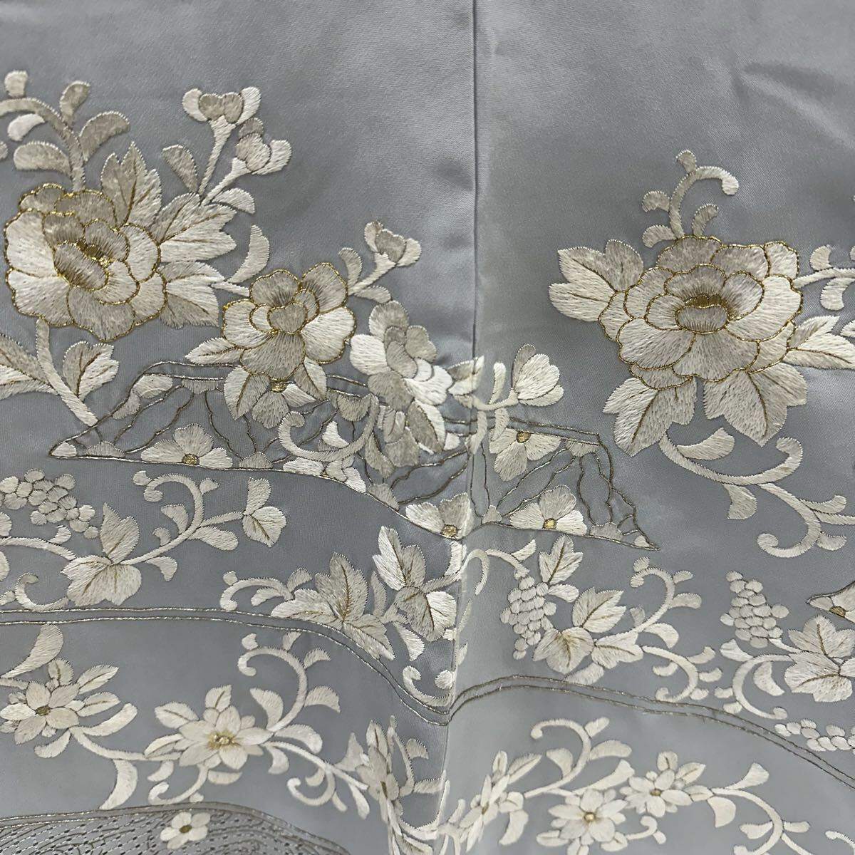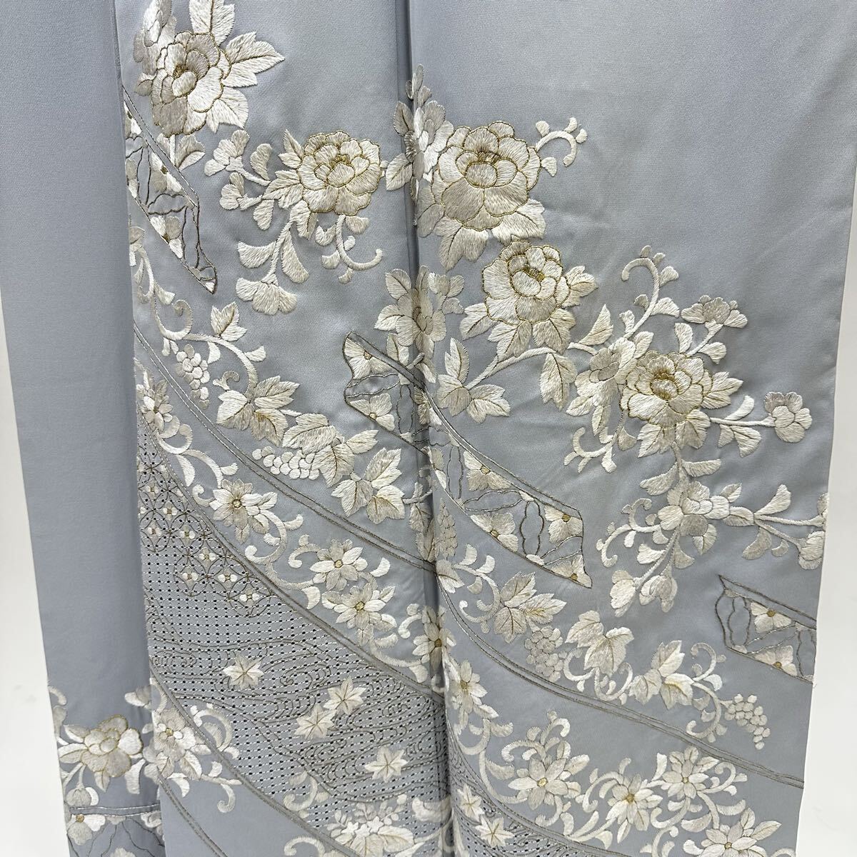 【七福】c774 訪問着 刺繍 正絹 袷仕立て 中国三大刺繍 汕頭刺繍 蘇州刺繍 金糸 着物 逸品 身丈 約 159.5cm 裄 約66cm