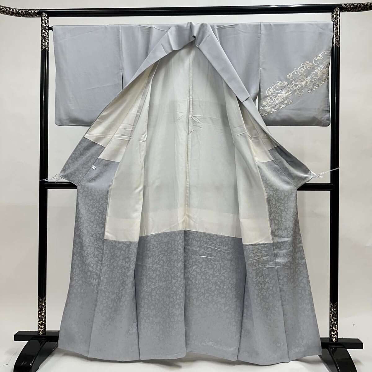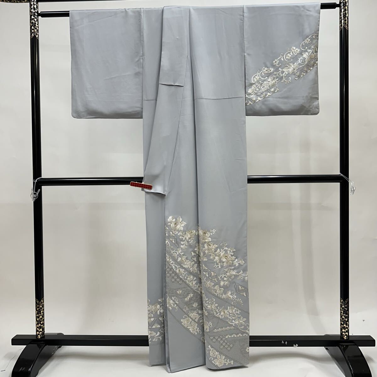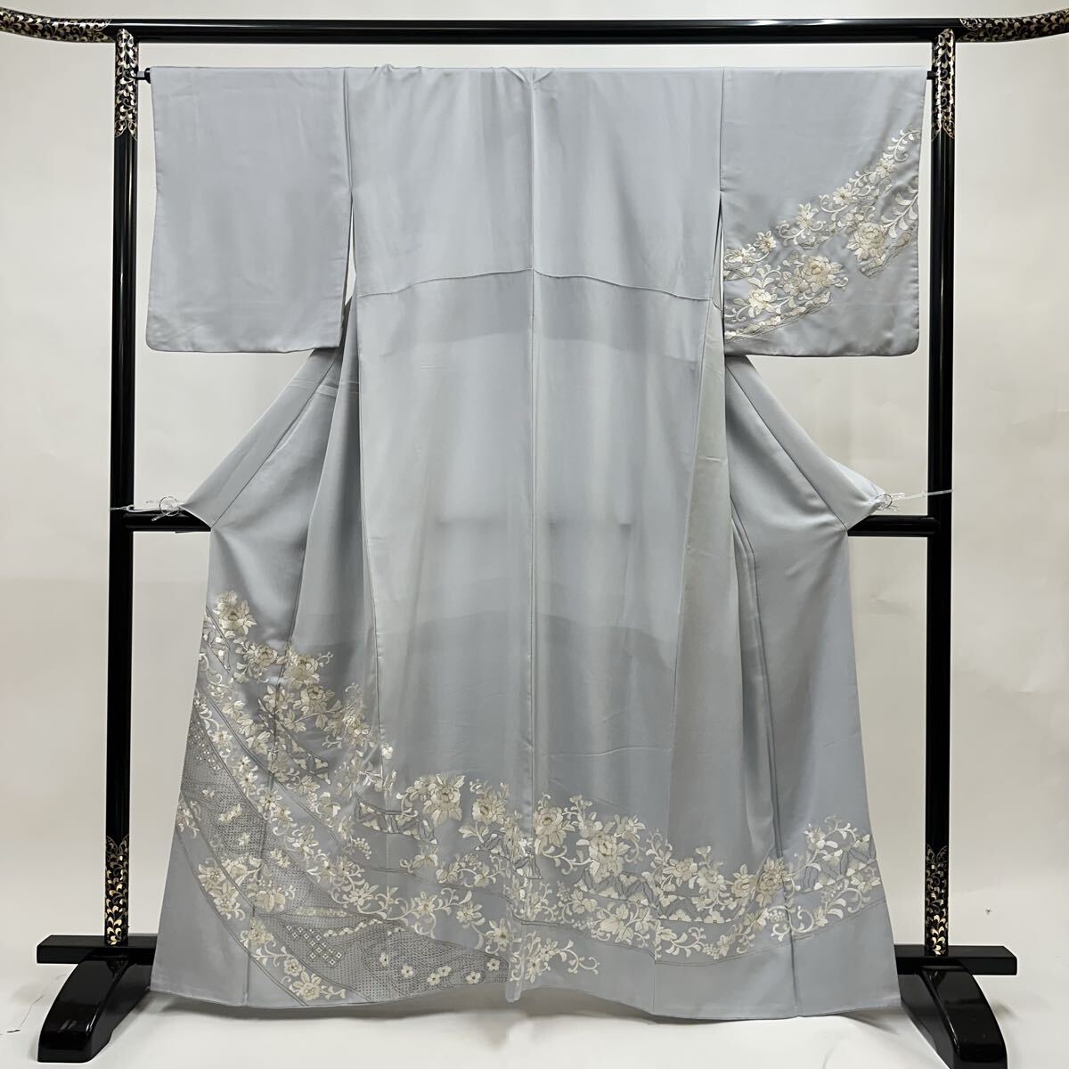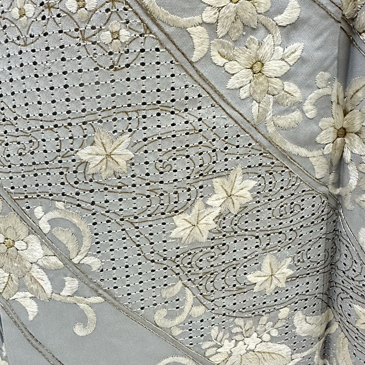 【七福】c774 訪問着 刺繍 正絹 袷仕立て 中国三大刺繍 汕頭刺繍 蘇州刺繍 金糸 着物 逸品 身丈 約 159.5cm 裄 約66cm