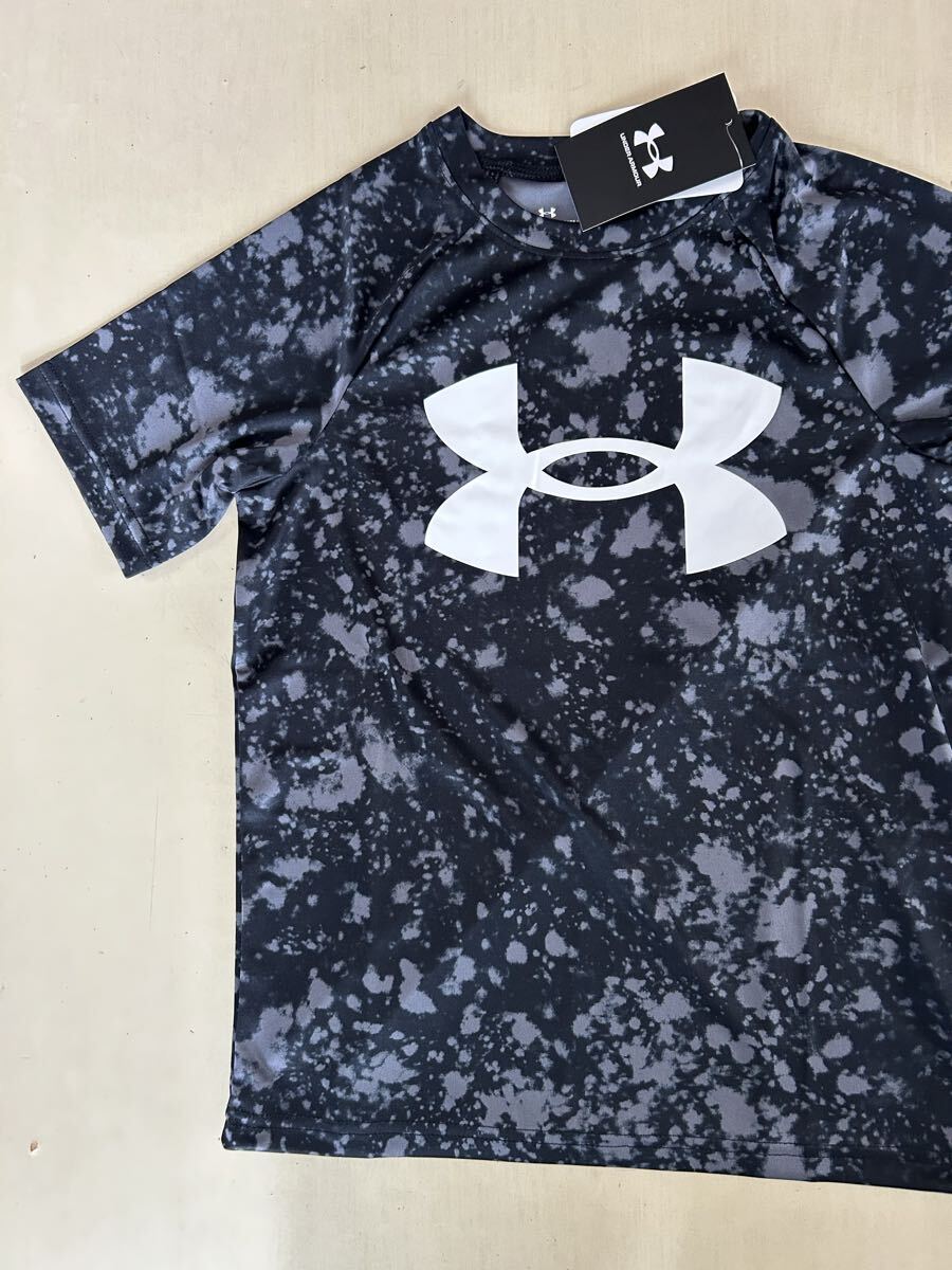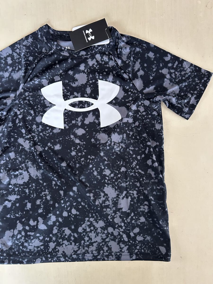 UAテック ショートスリーブTシャツ オールオーバープリント ビッグロゴ トレーニング KIDS