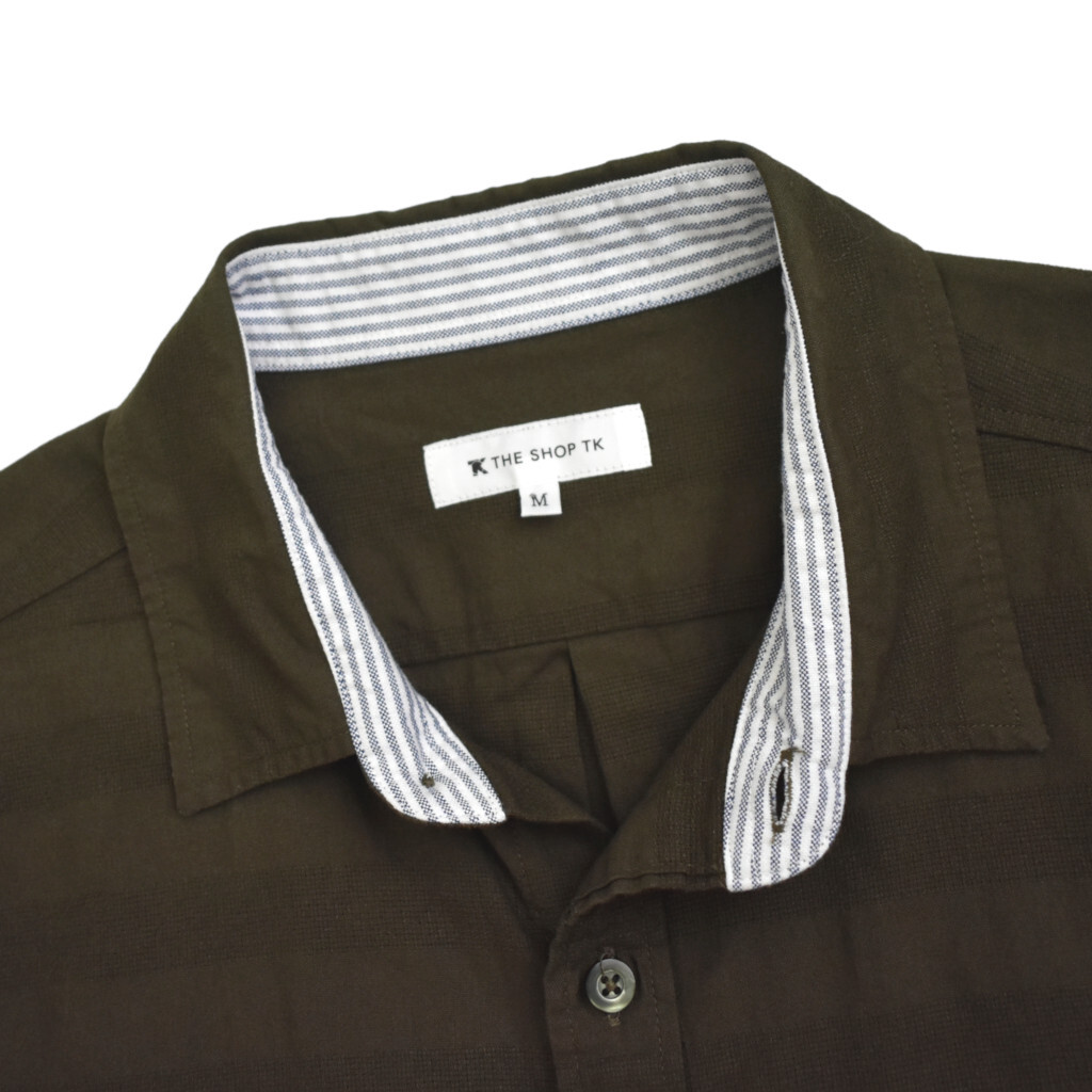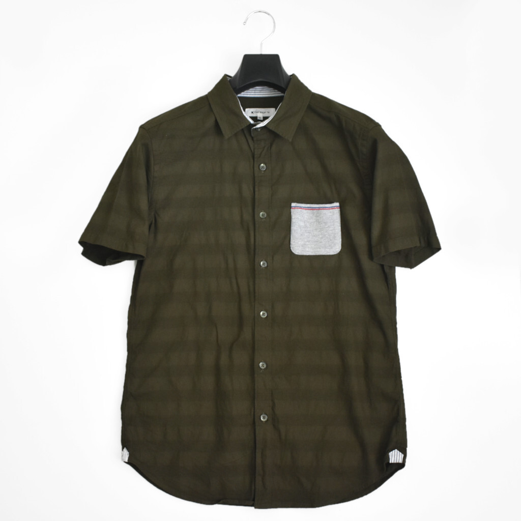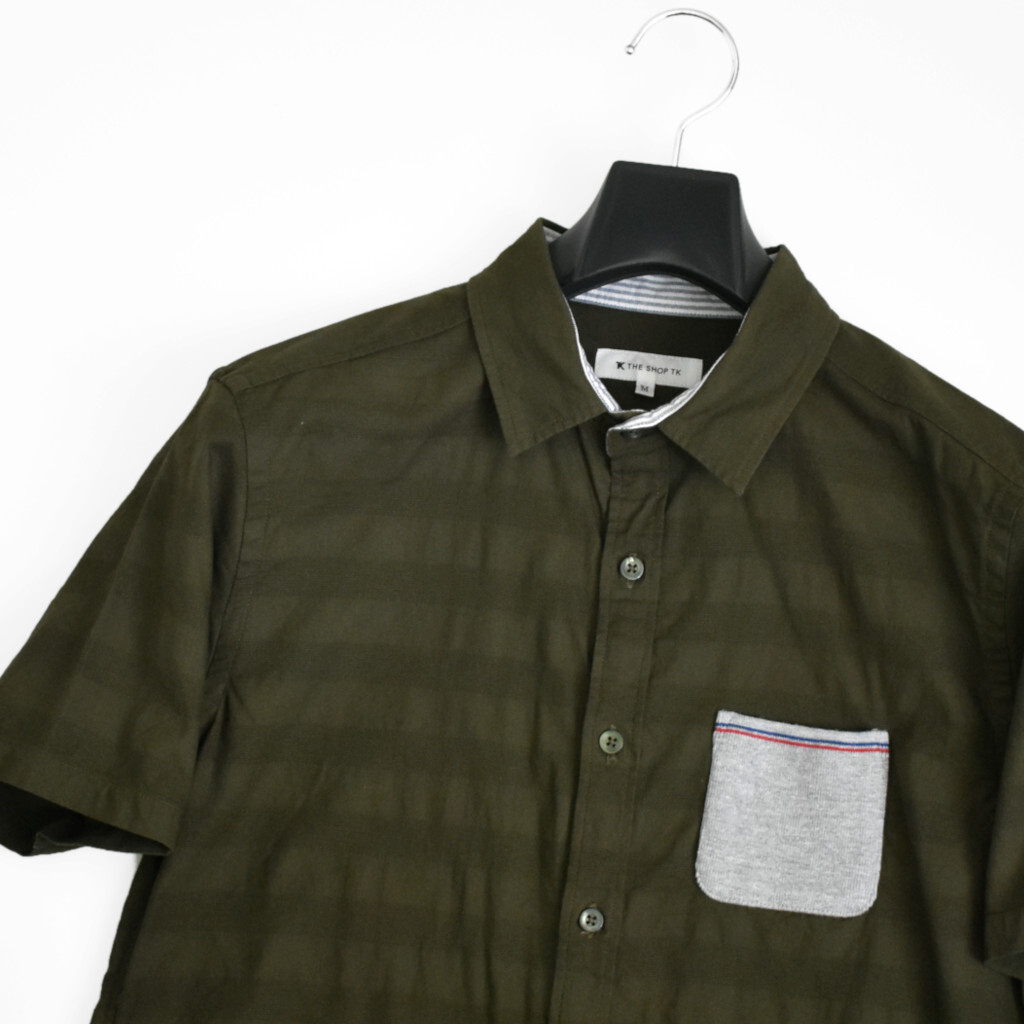 良品 THE SHOP TK タケオキクチ ボーダー シャツ オリーブ M メンズ 半袖 異素材ポケット