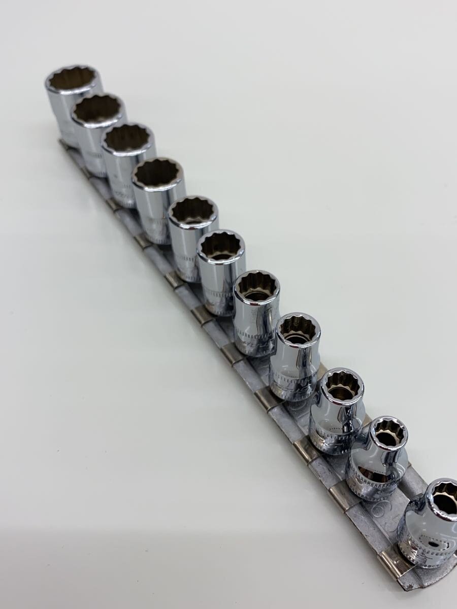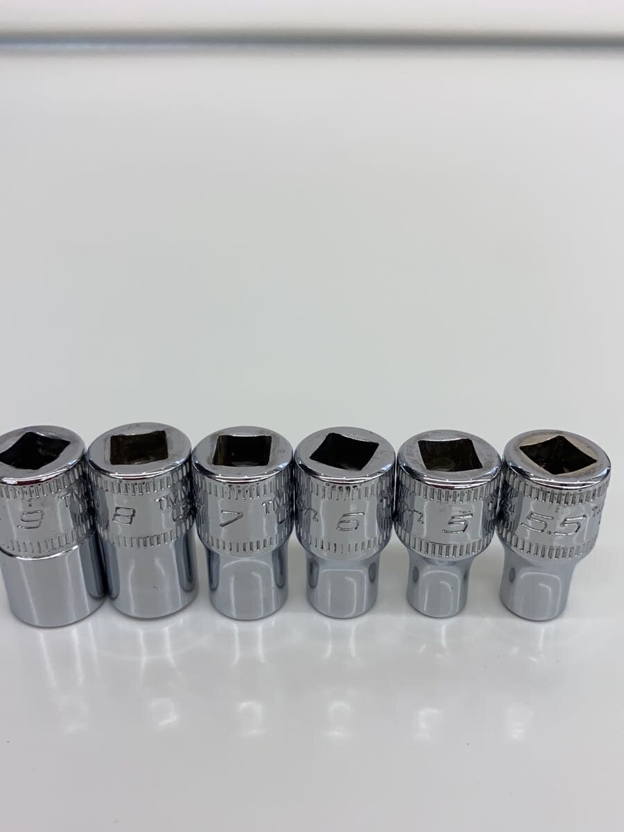 | 型番:TMMD5、TMMD5.5、TMMD6、TMMD7、TMMD8、TMMD9、TMMD10、TMMD11、TMMD12、TMMD13、TMMD14 差込角1/4インチ(6.35mm) シャローソケット Shallow Socket セット内容:ソケット×11P、ソケットホルダー 目立ったダメージ/汚れはなく、一般的な中古品程度の商品状態です。 |