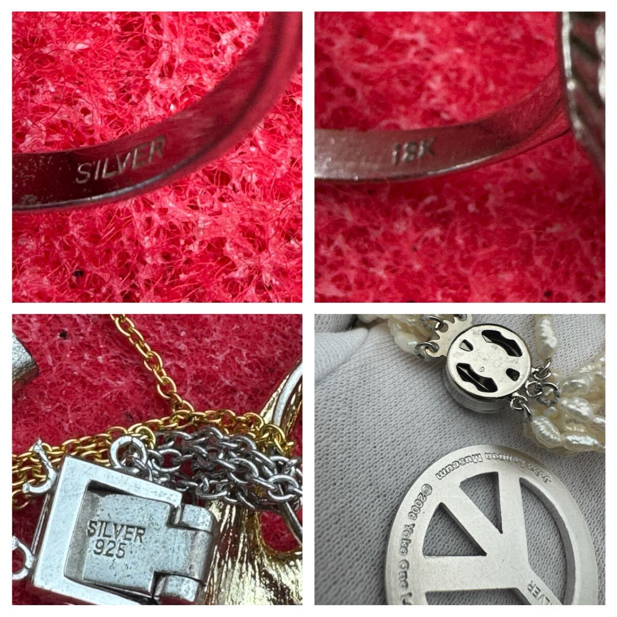 軽く見ただけでも、純銀(SILVER刻印あり)・K18・18K・925刻印 の品が含まれています。(※写真にてご確認ください)