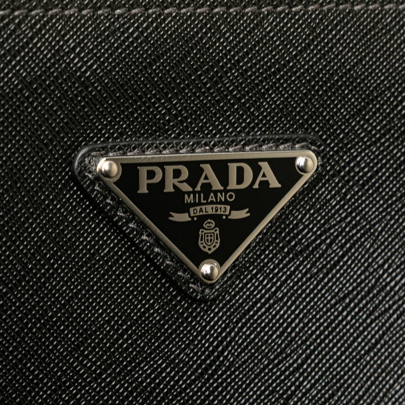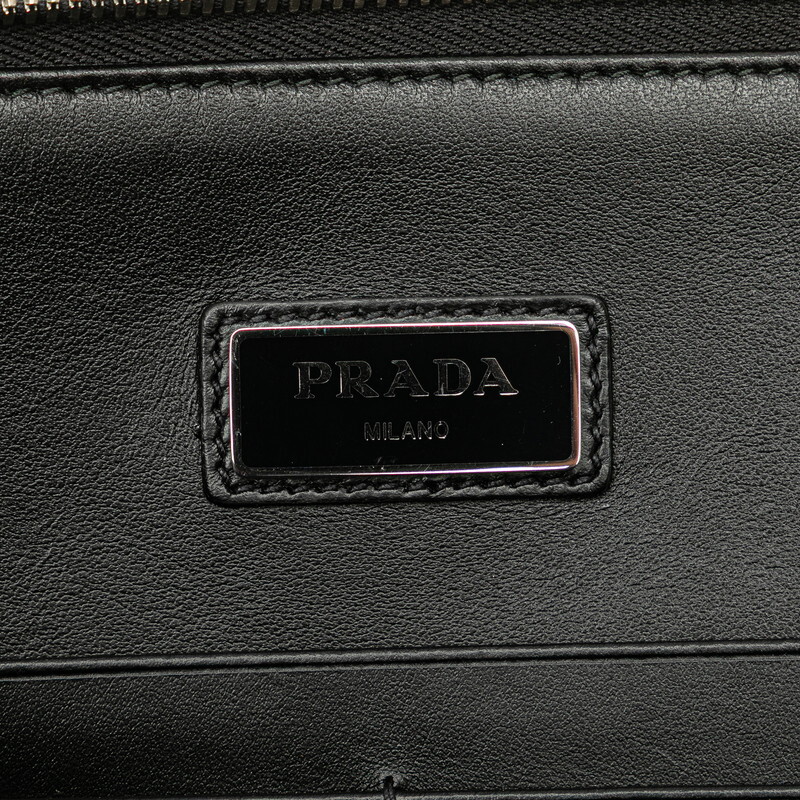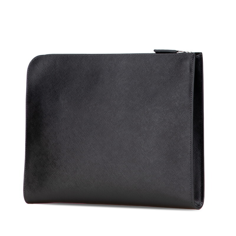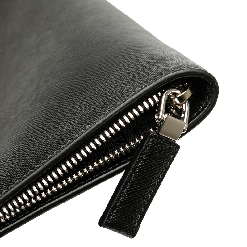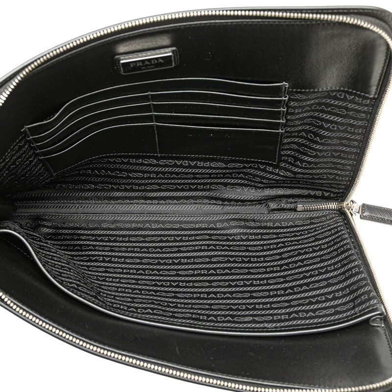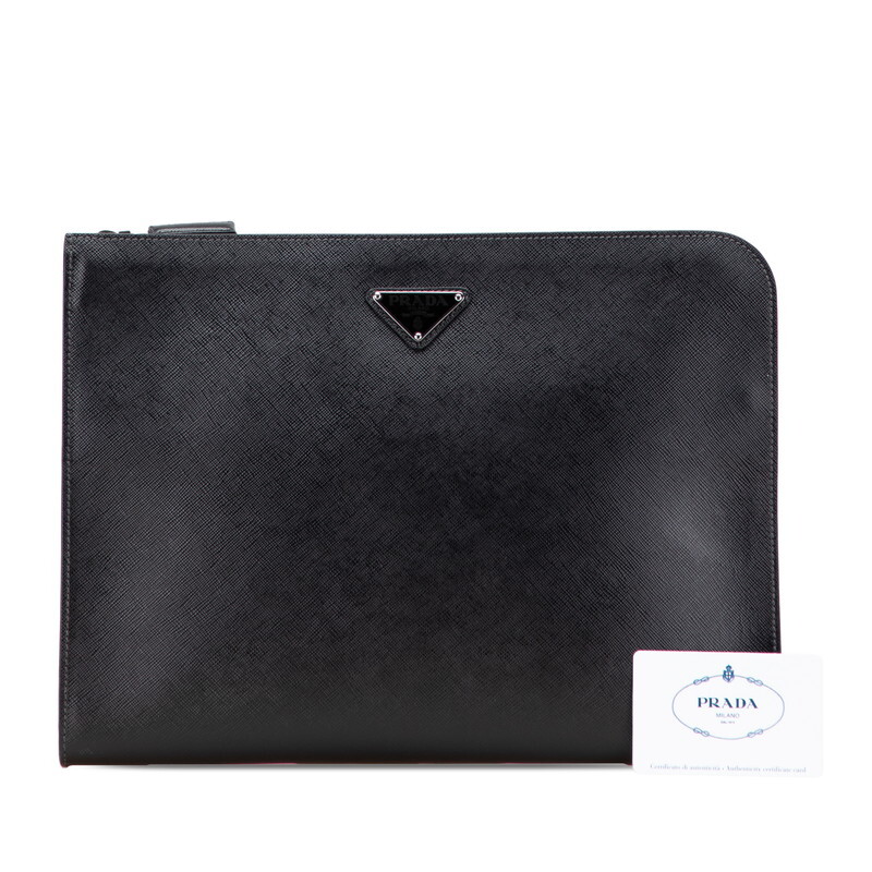 プラダ 三角ロゴプレート クラッチバッグ ブラック レザー レディース PRADA 【中古】