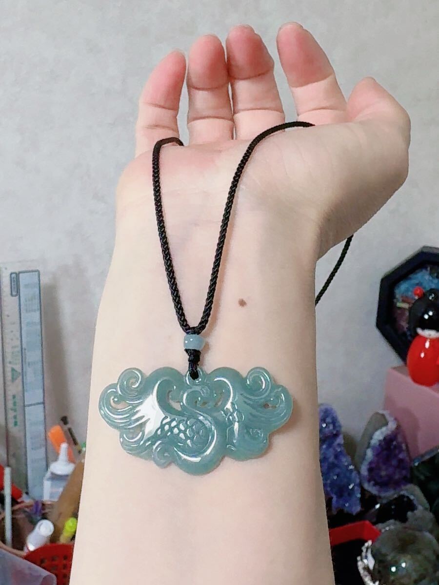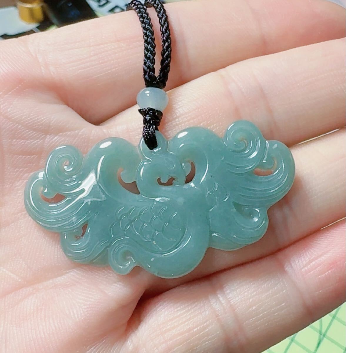 R2-01716-1 天然本翡翠《本物保証》「鳳凰」ペンダント 一品一図 高品質 一点物 魔除け 昇進 成功 風水 金運 財運 幸運 幸福 縁起物 パワーストーン 鳳凰涅槃 幸運続々