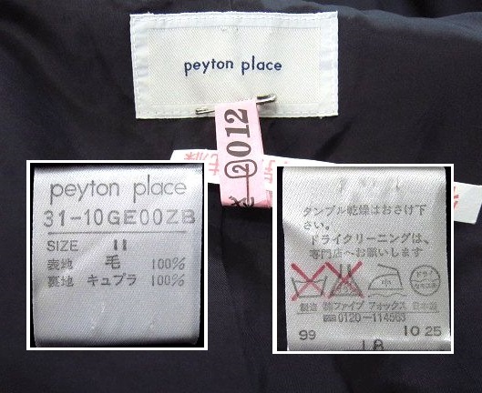 ブランド ,peyton place ペイトン プレイス ㈱ファイブフォックス 日本製 特徴 春夏秋向けの薄手素材で素肌に優しいウール100%素材 背抜き仕立のテーラードジャケットです。 フロント3ヶボタン留め仕様。両前ポケット付