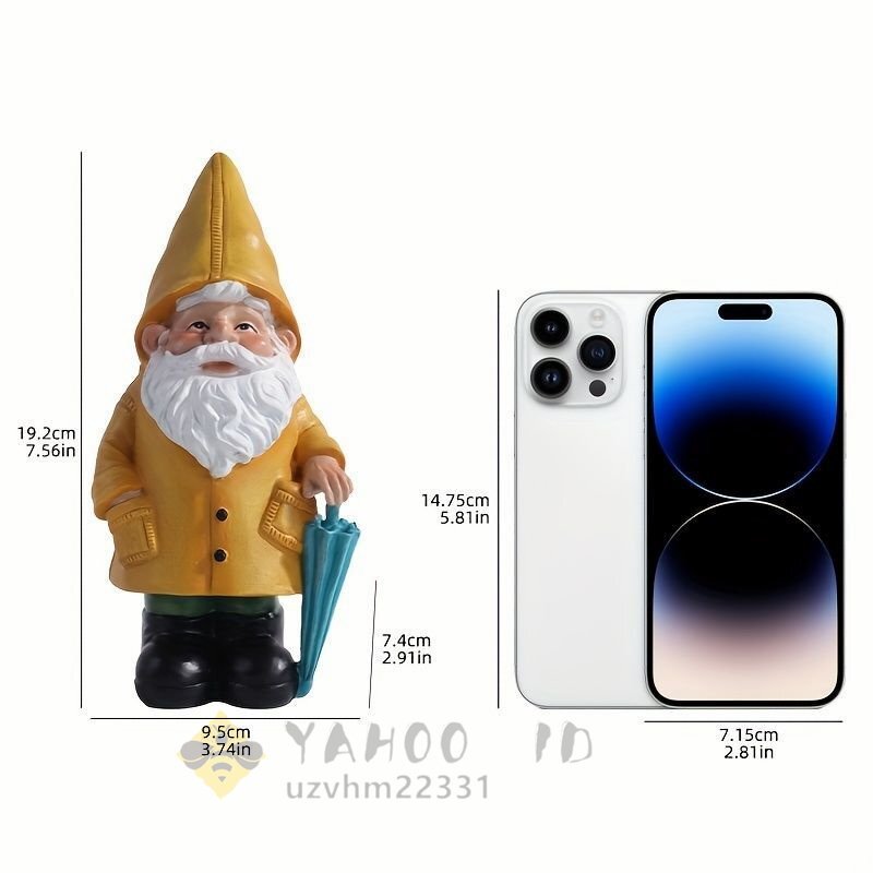 雨合羽を着た可愛い小人のオブジェは、あなたの庭や室内を素敵に飾るアイテムです。ユニークなデザインは、見る人を和ませ、明るい気持ちにさせてくれます。樹脂製で耐久性があり、屋内はもちろん、屋外でも安心してご使用いただけます。玄関やリビング、ダイニングなど、様々な場所でインテリアのアクセントとして活躍します。贈り物やギフトにもぴったりのアイテムです!可愛らしいフォルムが、ガーデニングや庭の装飾に最適です。