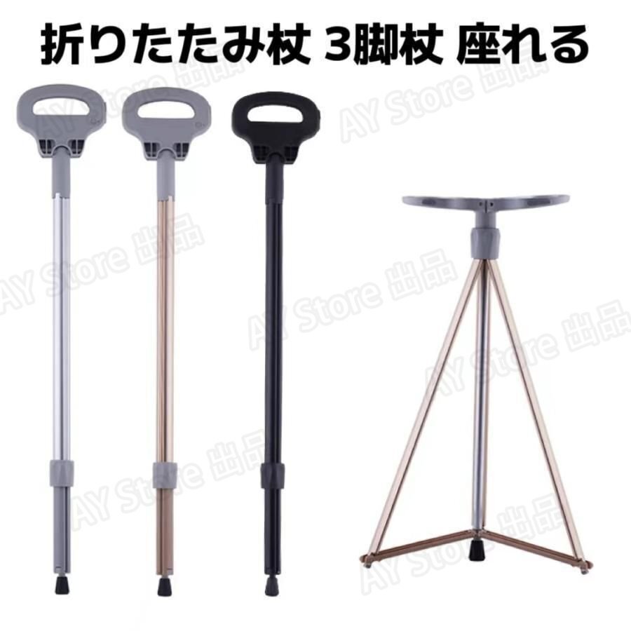 ステッキチェア 折りたたみ杖 超軽量 登山杖 アルミ製 脚杖椅子 アウトドア ストック 座れる つえ 高齢者 滑り止め ゴールド bhw0220.2