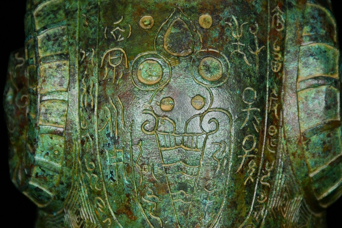 【瓏】古青銅鏨刻彫 青銅銘文鷹尊 商周時期 古置物擺件 青銅器 古美術 骨董品 蔵出