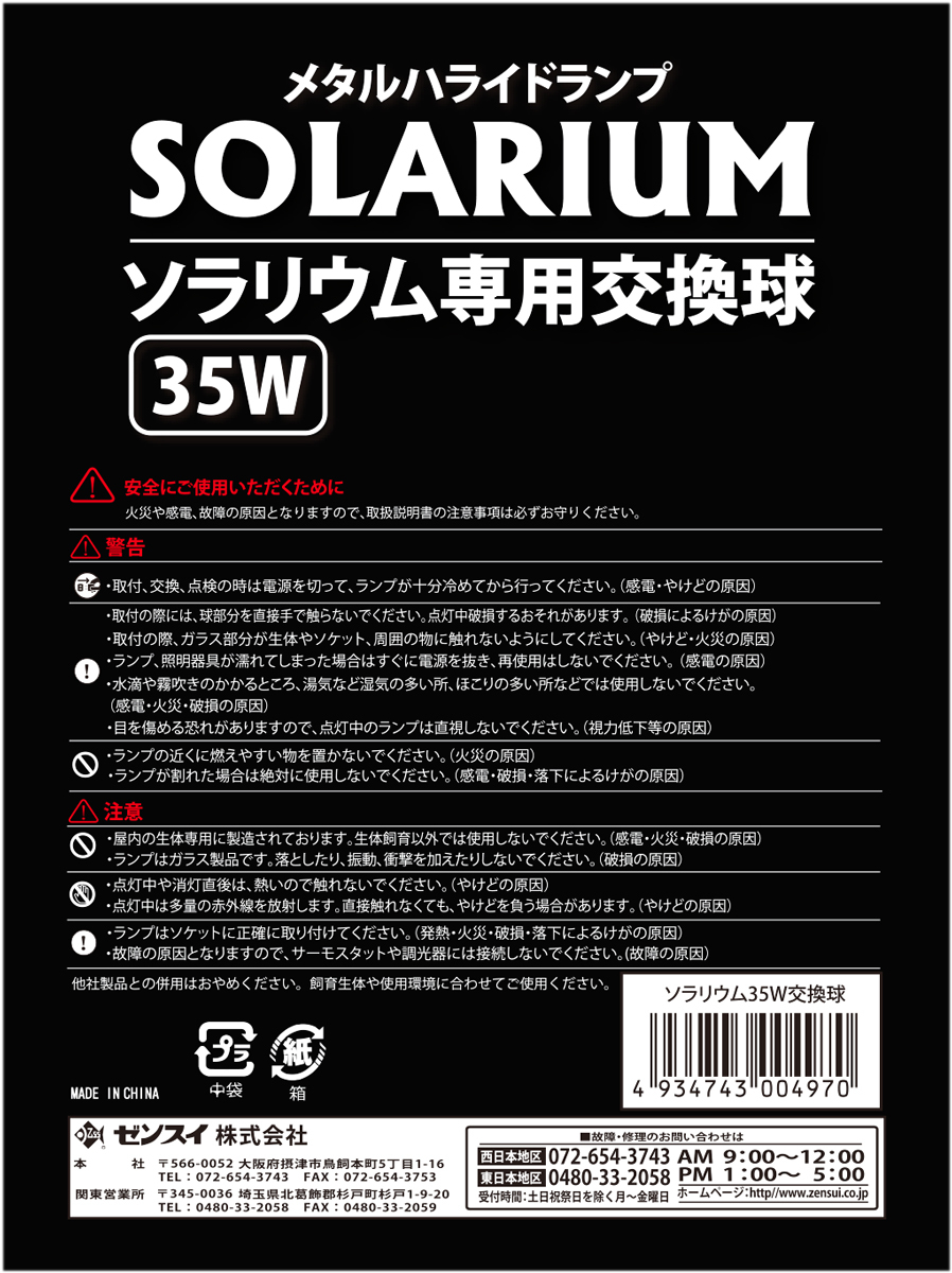 ☆ ソラリウム専用交換球35W ゼンスイ ペットペットゾーン 爬虫類用メタルハライドランプ 消費税0円 新品 ☆