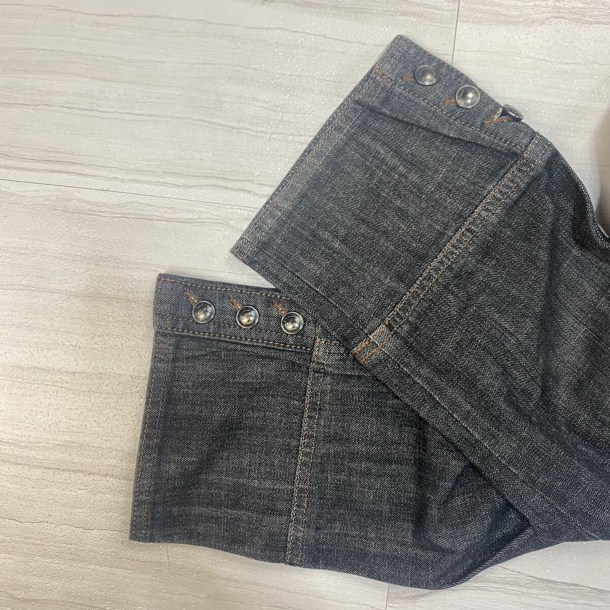 TR0812 23区 ニジューサンク オンワード クロップド デニムパンツ スリッド ボタン Y2K 流行 トレンド ユニセックス可 グレー 46