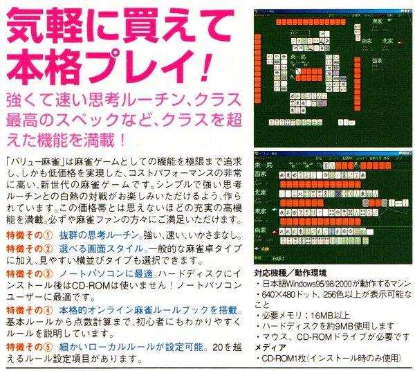 強力な思考ルーチンが搭載された麻雀ゲームソフトです。