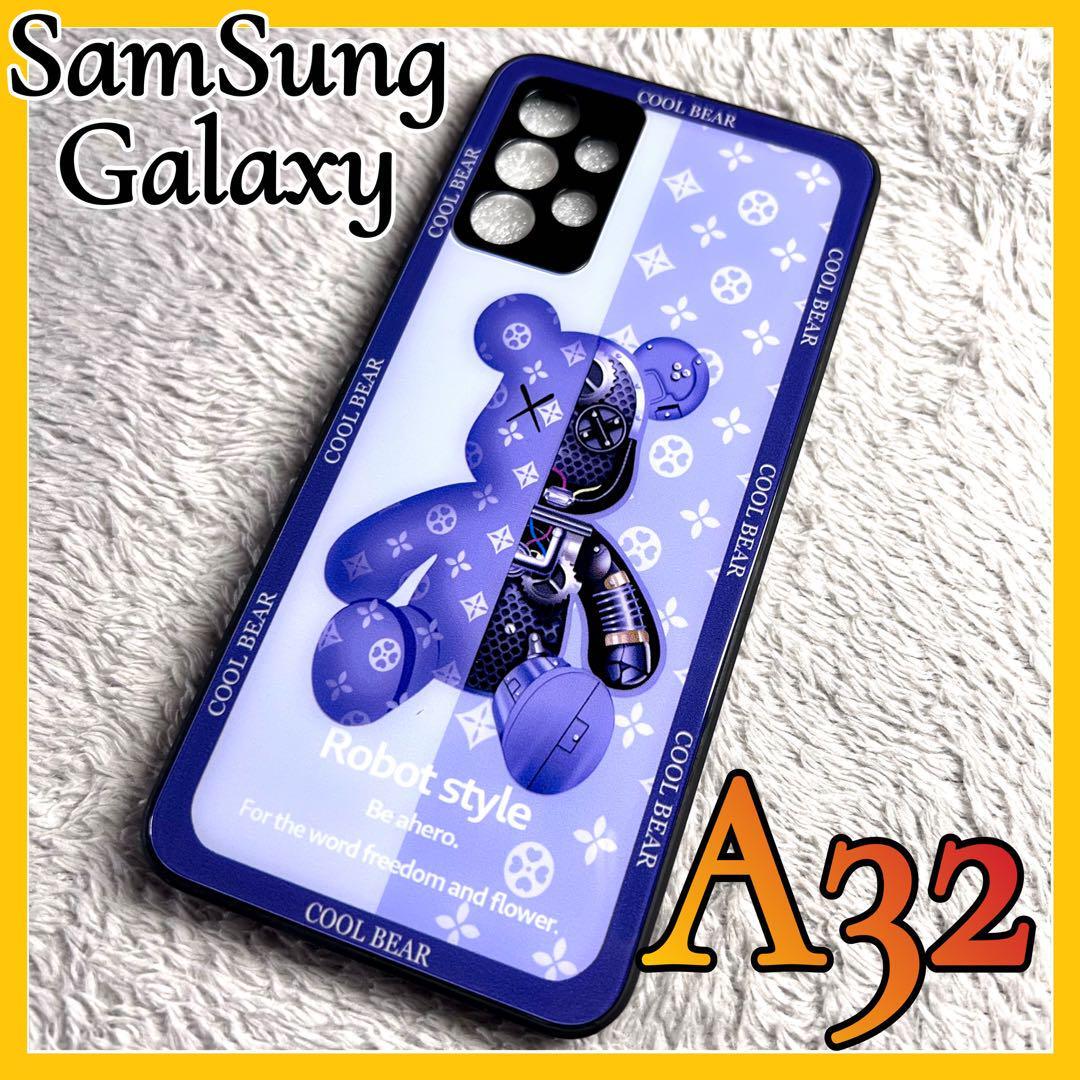 SamSung Galaxy A32ケース TPU強化カラス 青色 可愛い お洒落 BEAR カメラ保護 サムスン ギャラクシーA32カバー