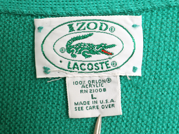 | 商品名 | 80s USA製 ラコステ アクリル ニット カーディガン メンズ レディース L 古着 ヴィンテージ 羽織り 前開き セーター ワンポイント グリーン |