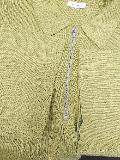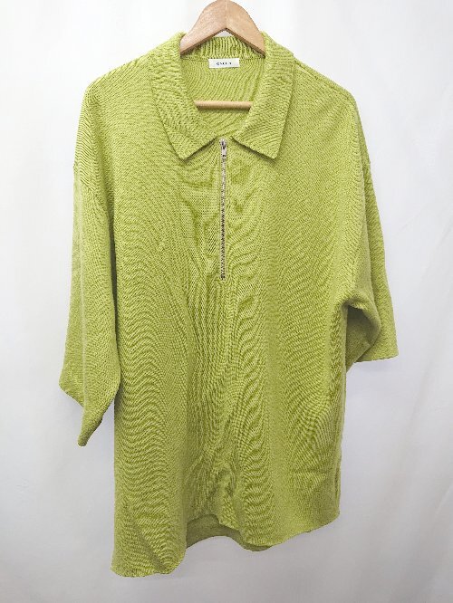 ■ ⊇ ONCILY オンシェリー オーバーサイズ 半袖 ハーフジップニットプルオーバー サイズL グリーン系 レディース E