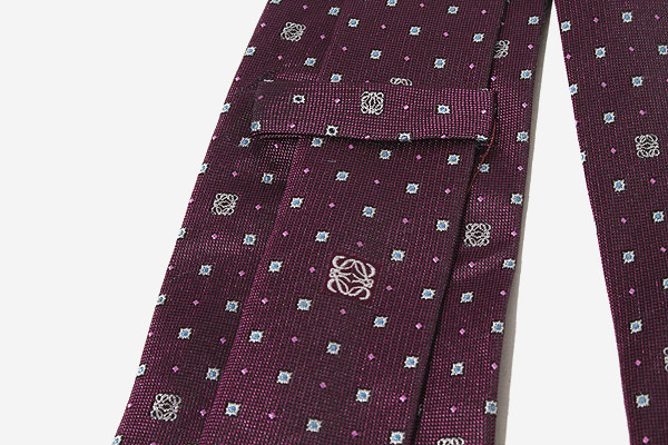 LOEWE ロエベ アナグラムドット シルク ネクタイ レギュラータイ Burgundy バーガンディ /◆ メンズ