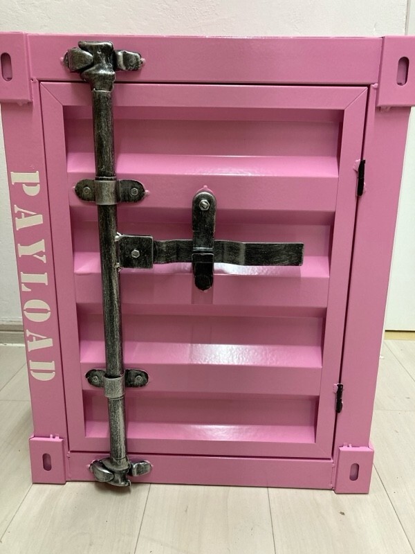 ロック付きメタルサイドテーブル ピンク 収納家具