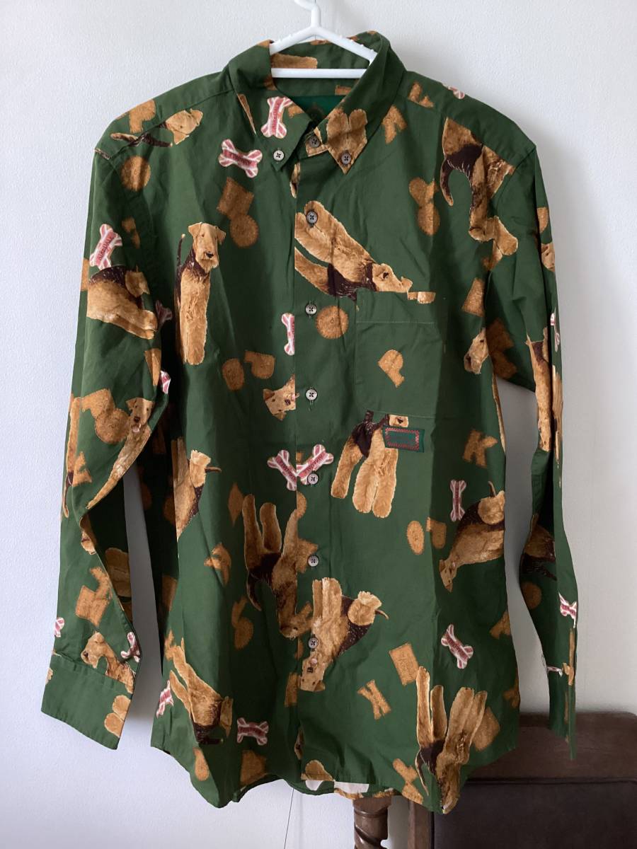 カールヘルム長袖シャツ [エアデールテリア・緑系]Mサイズ/犬柄(AIREDALE TERRIER)/ボタンダウン/紙タグ無し未使用品/折り皺あり