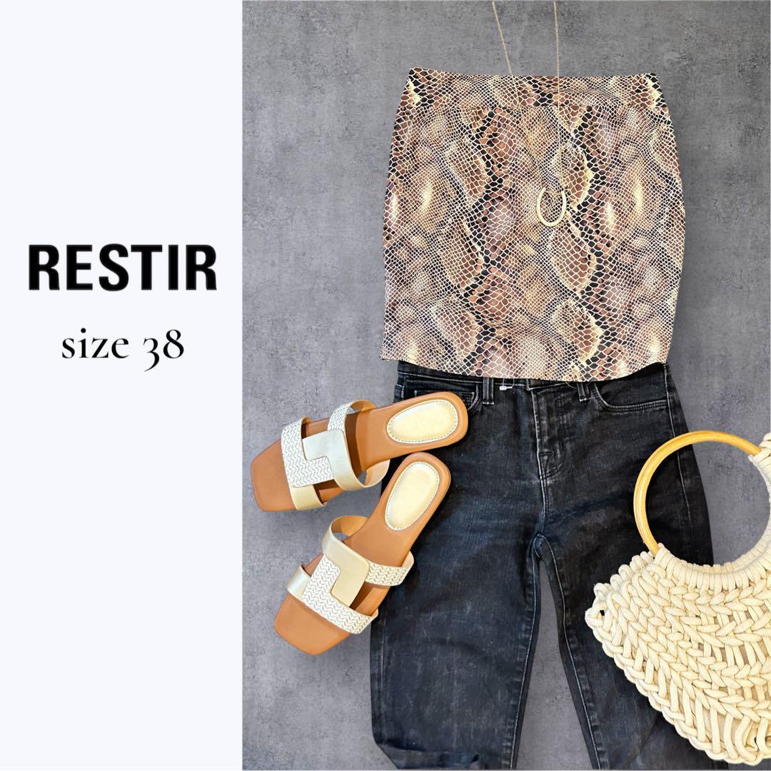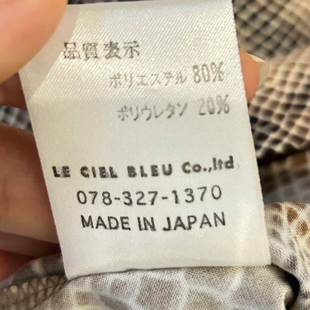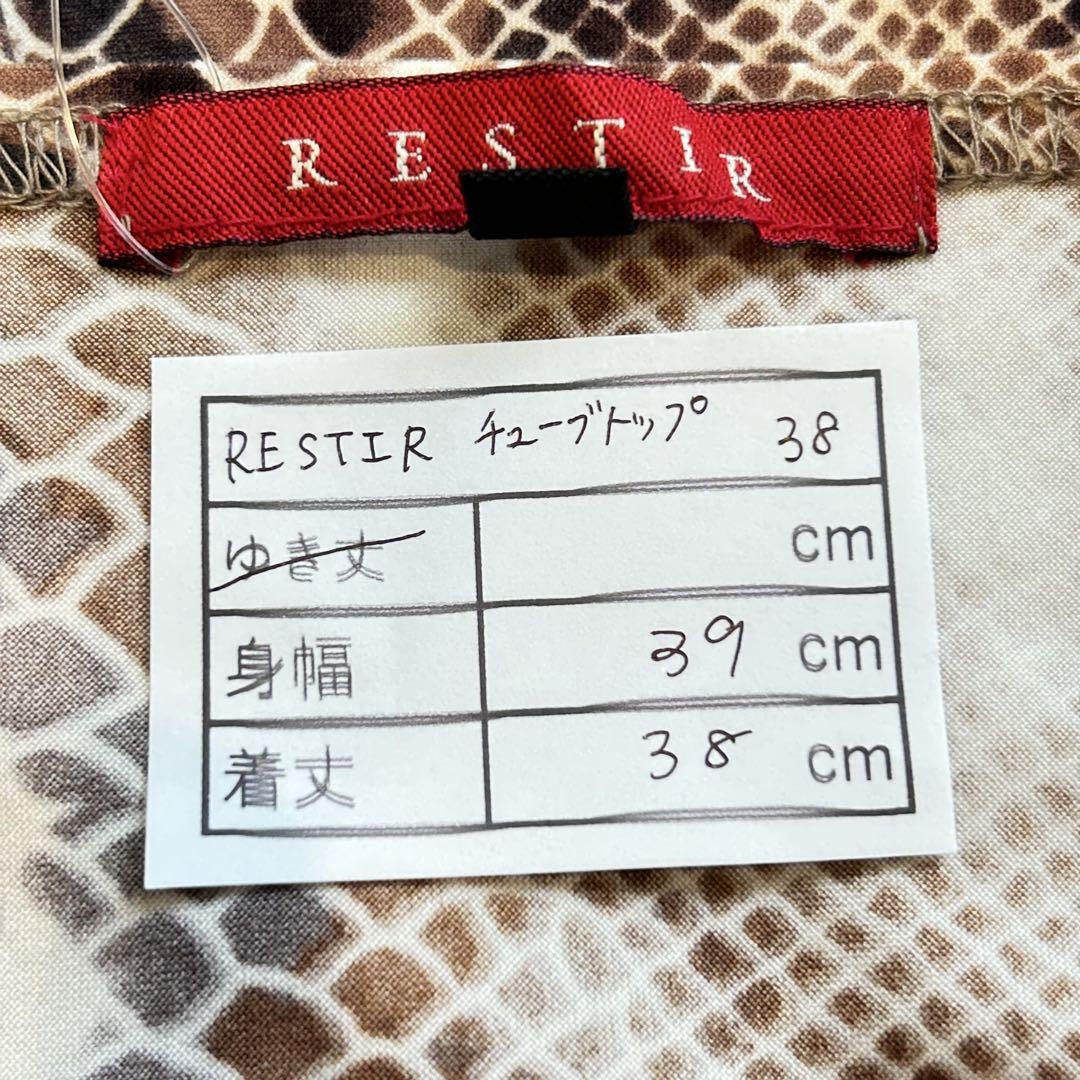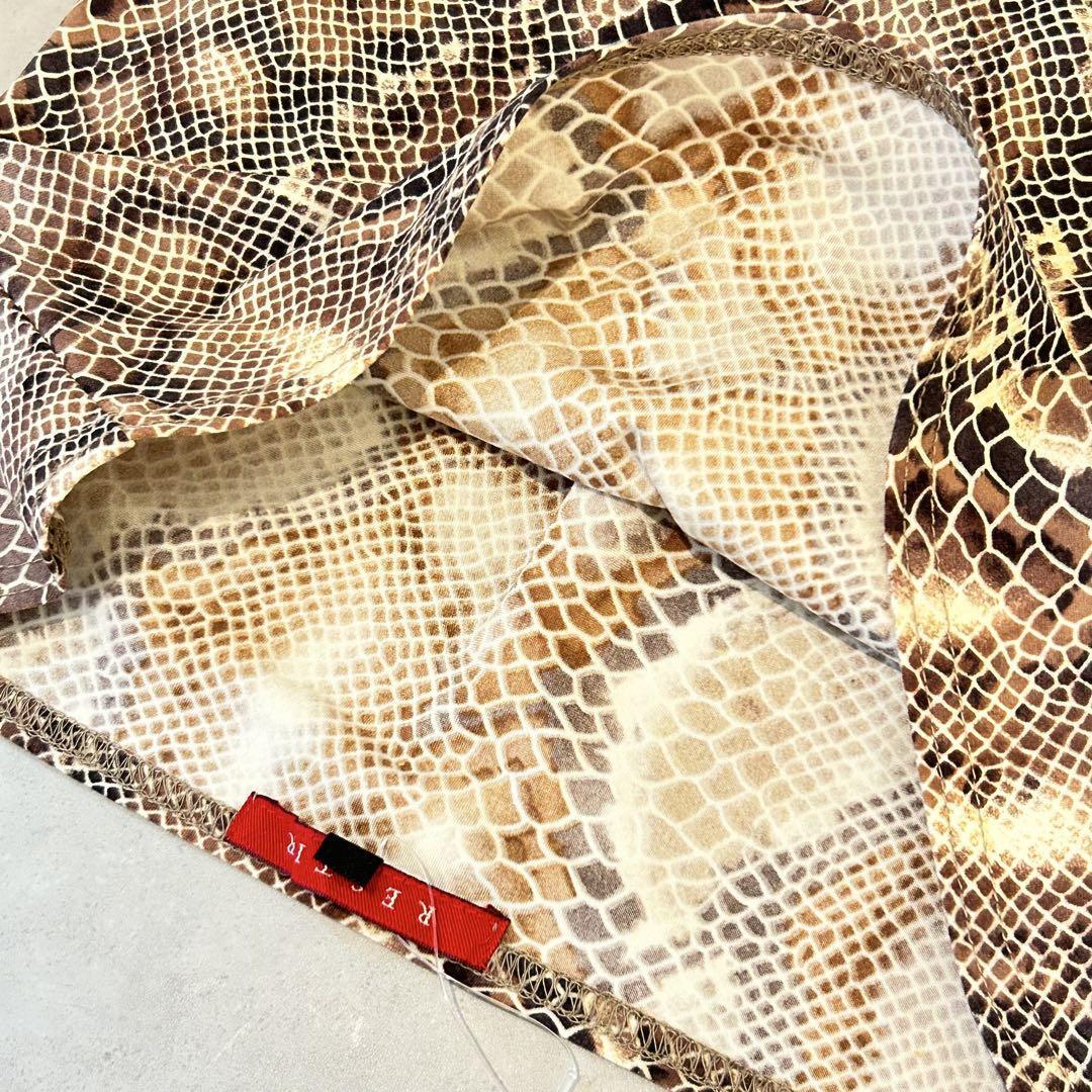 RESTIR ルシェルブルー LE CIEL BLEU 日本製 ベアトップ チューブトップ パイソン スネーク柄 ブラウン モード Y2K ストレッチ 38 M