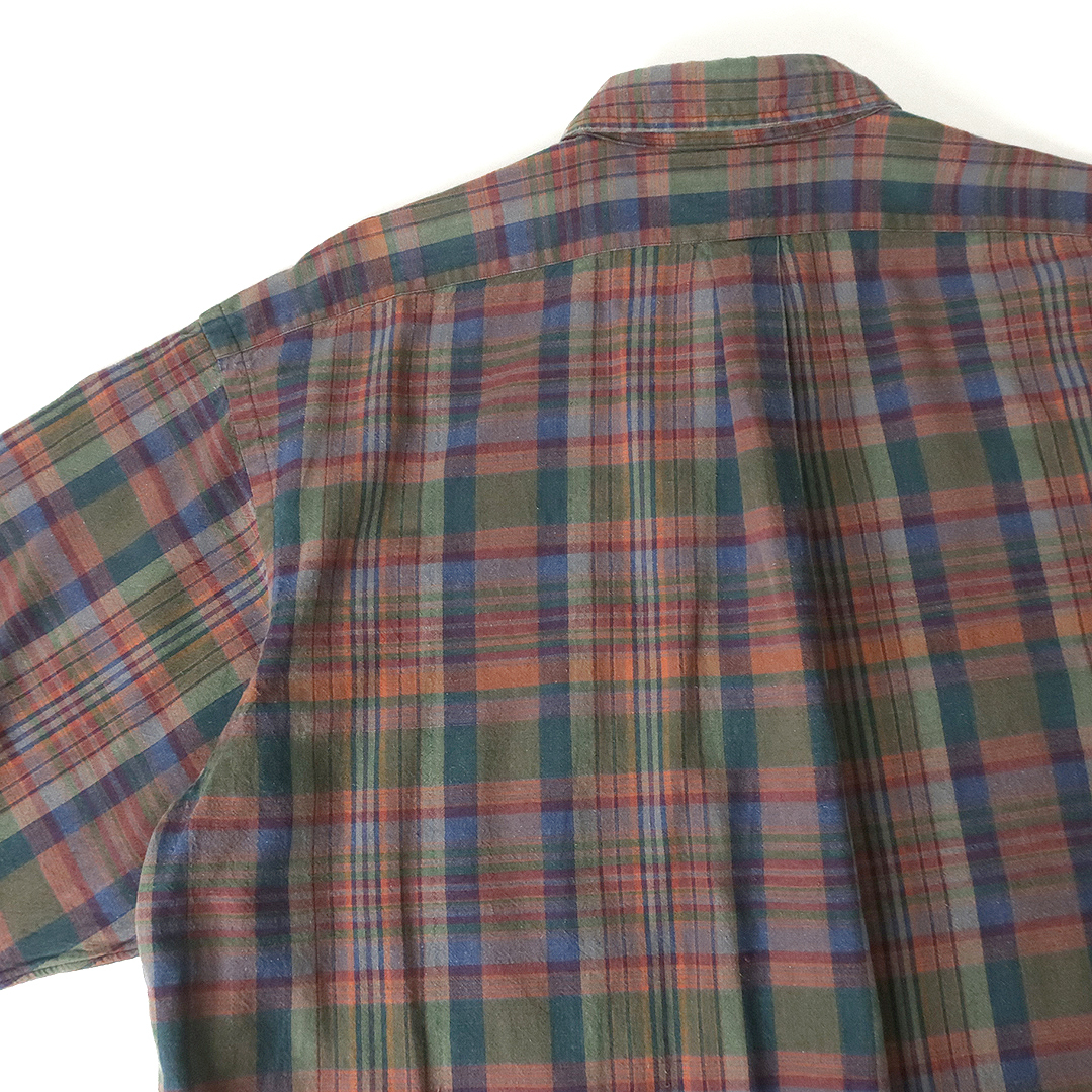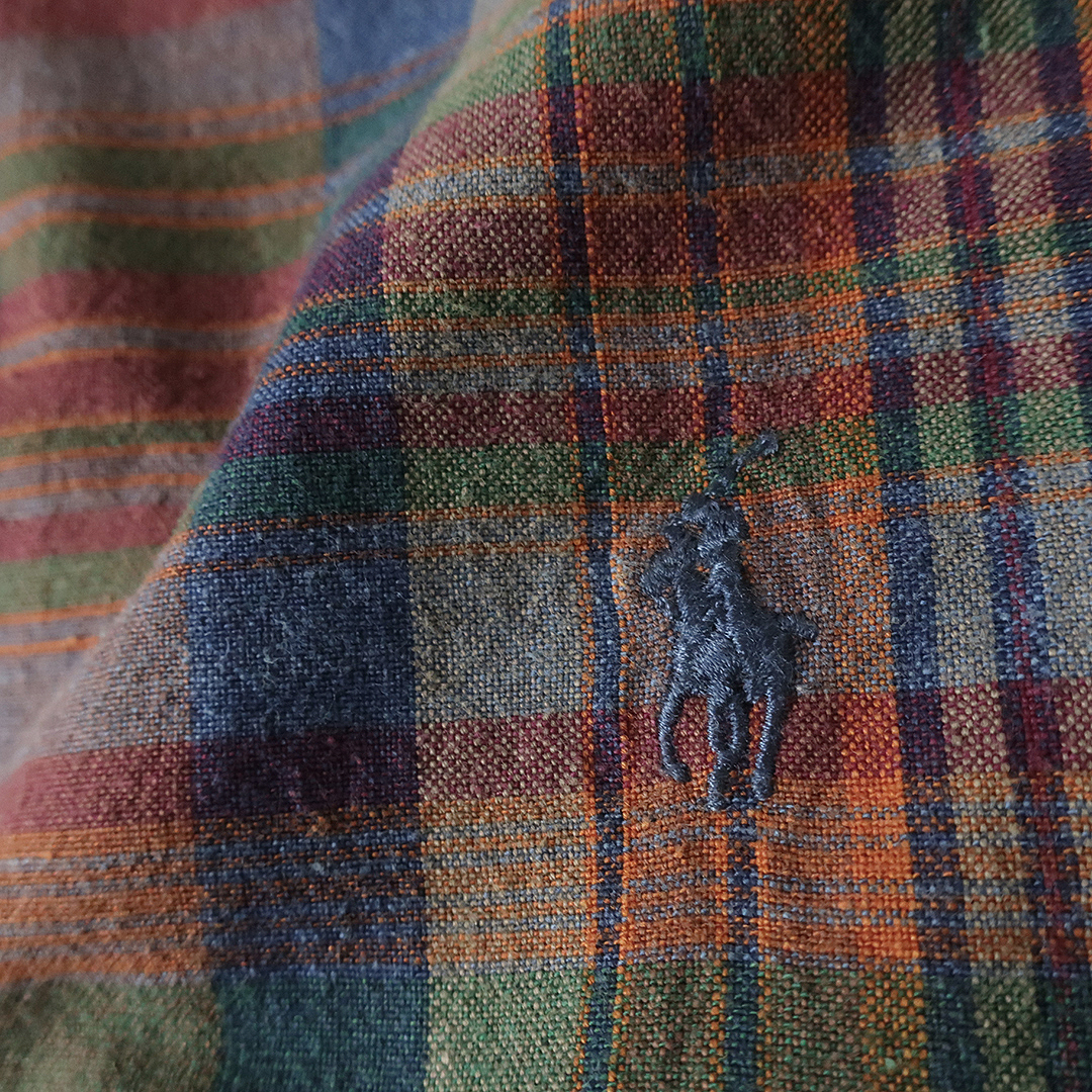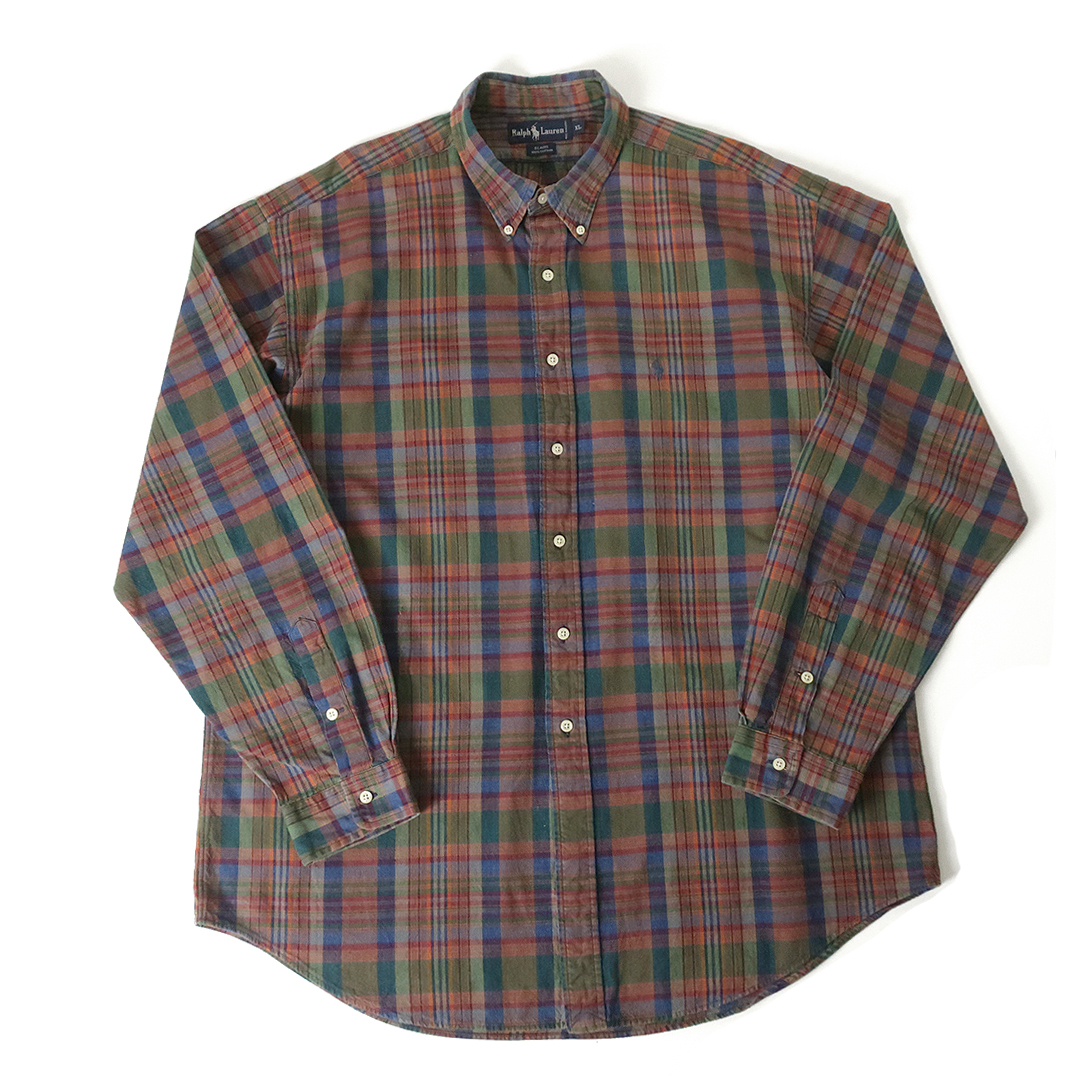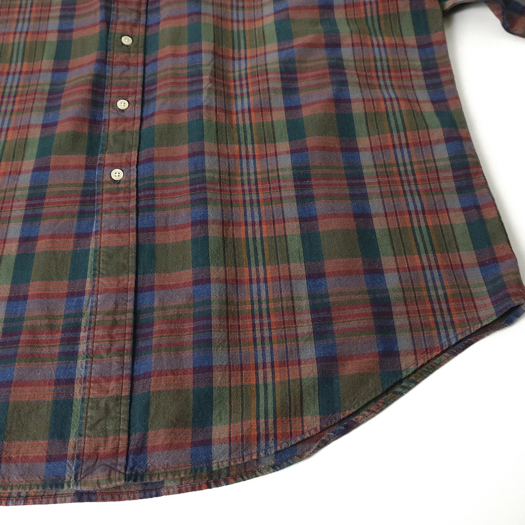 US90s ラルフローレン BLAIRE ボタンダウンシャツ ダーク系マドラスチェック/ポニー刺繍/オックスフォード生地 (XL)