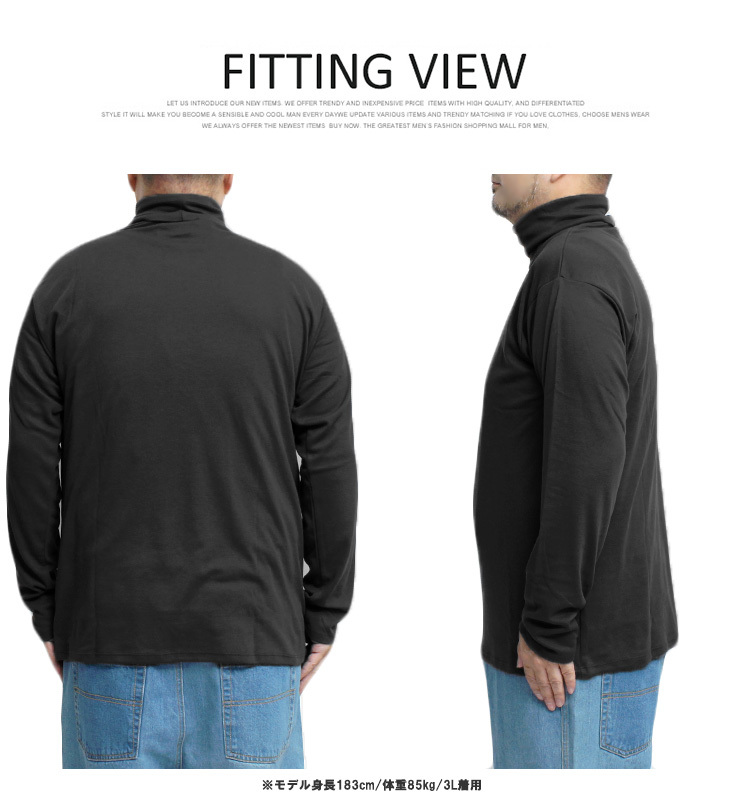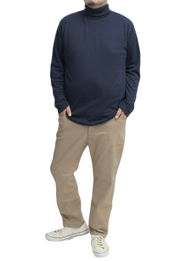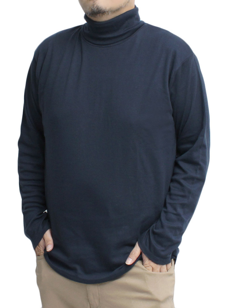商品名 | 【新品】 L ネイビー 長袖Tシャツ メンズ 大きいサイズ 無地 フライス ボーダー タートルネック カットソー |