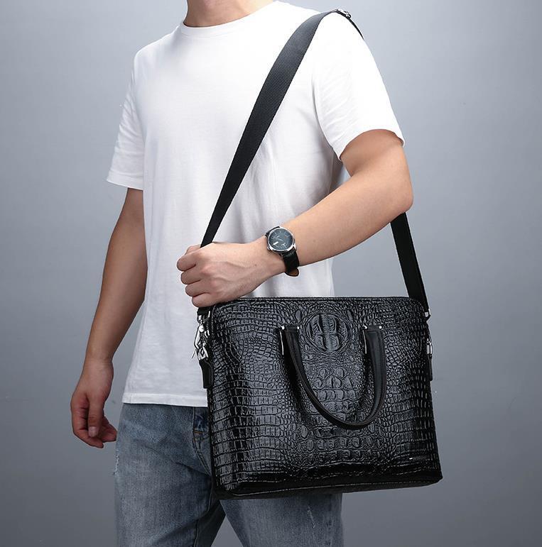 送料無料 ワニ革風 メンズ ビジネスバッグ トートバッグ ショルダーバッグ ブラック