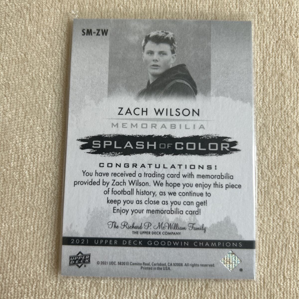 ZACH WILSON MEMORABILIA 2021 upper deck SM-ZW SPLASH of COLOR