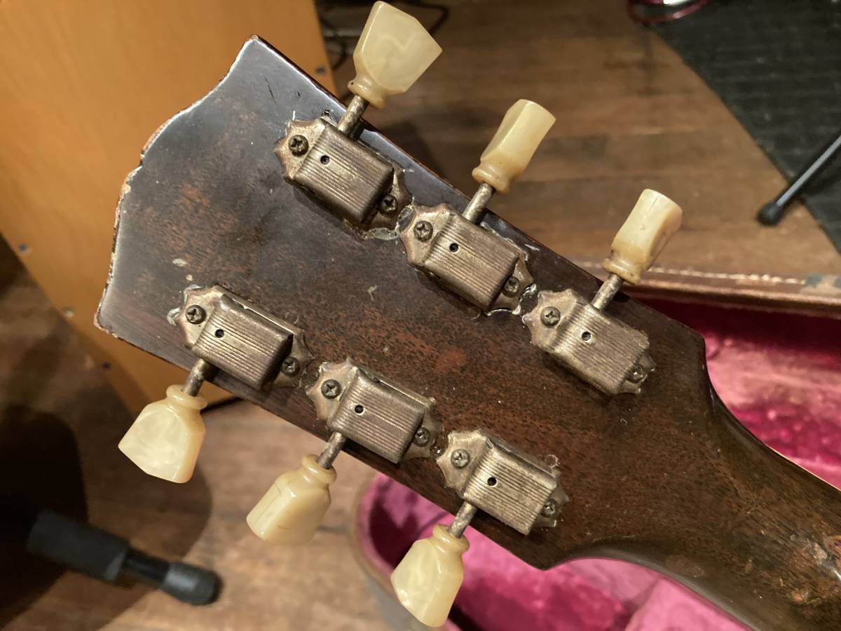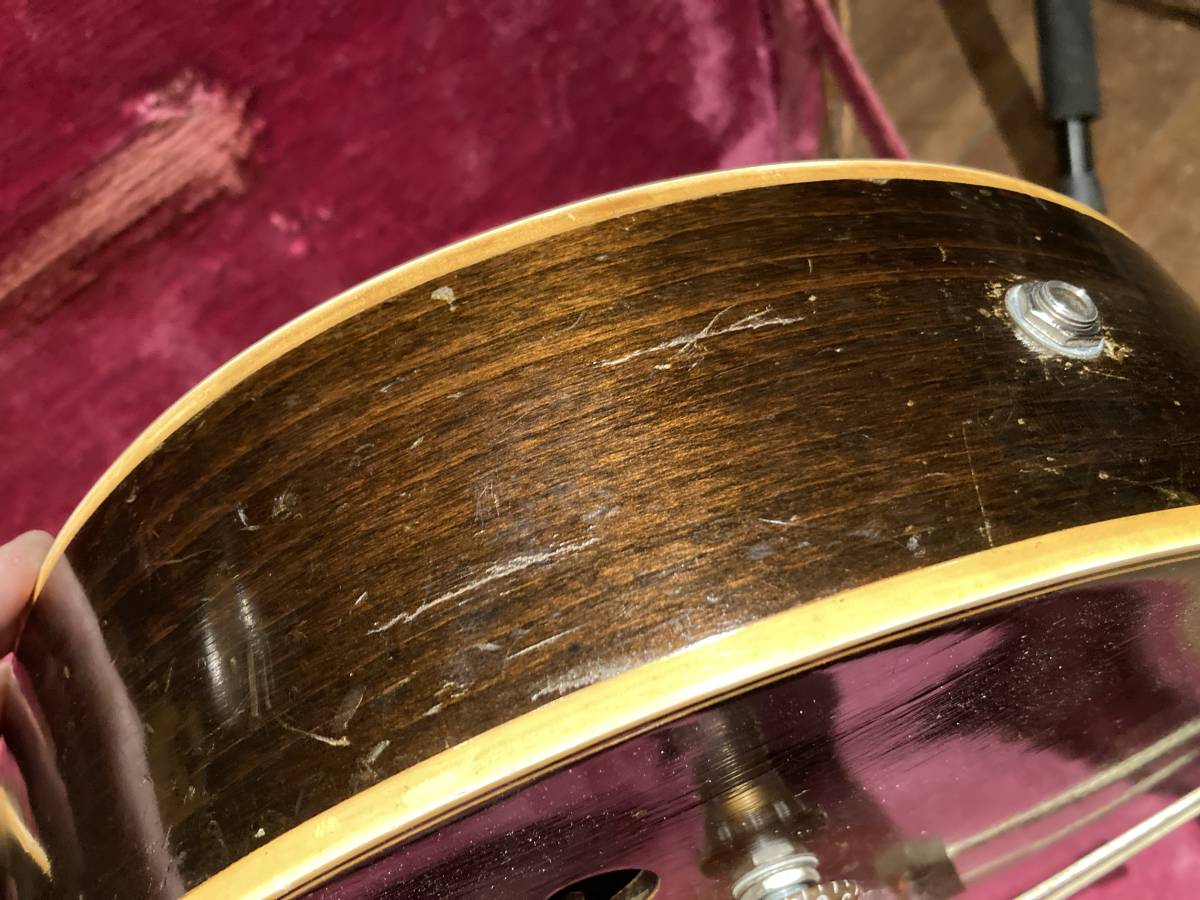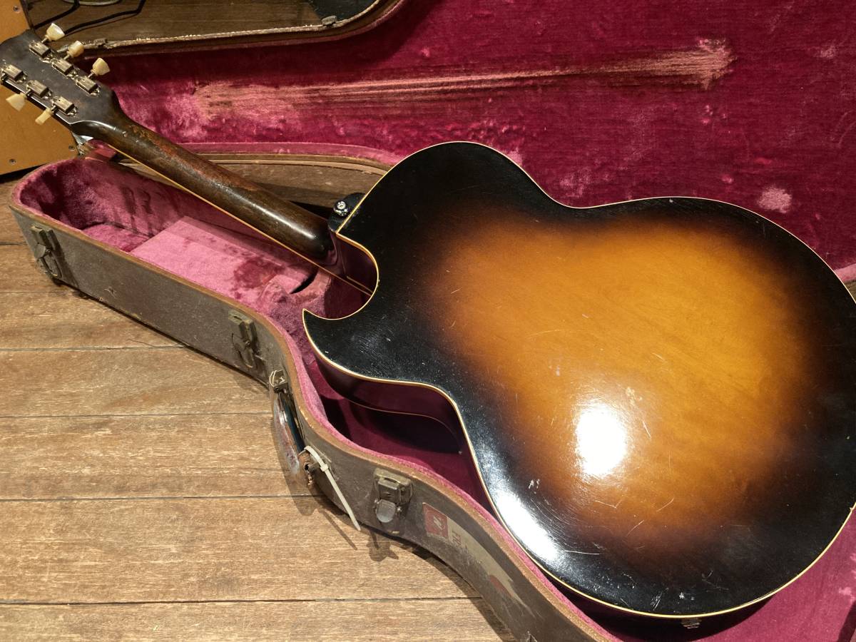 | ギブソン ES-175 1951年製です 傷もたくさんあります かなり手が入っている分、現行の楽器として すぐ使用できます (フレットは磨いて下さい) 修理歴は定かではありませんが おそらく指板交換 その際のジョイント回り部分塗装 電気系は全て交換 (PU(ダンカン),ポット、ノブ、ジャック、) その他はオリジナルかと思います 塗装もごく部分的でほとんどは オリジナル塗装が残っています ネックは真っ直ぐでロッドもまだまだ効きます 落札者様でセッティングお願いします ペグは一度入れ替えられた形跡がありますが オリジナルかと思います 貴重なオリジナルハードケース付属 (ボロボロなのでオマケです) 追加画像はこちらです 試奏動画はこちらです ■ 佐川急便 全国3000円 (北海道、沖縄、その他離島など一部地域を除く) 注意事項 ■ 付属品など欠品している場合がございます ■ 追加画像を必ずご覧ください(傷等コメントにない場合もあります) ■ 完全ノークレーム、ノーリターンを了承できる方のみご入札下さい ■ 画像にない傷がある場合がございます ■ 追加画像用意できます。遠慮なくお申し付け下さい ■ 気になる部分は入札前に質問してください ■ コメントは私の個人的な感じ方です ■ 落札後3日以内に連絡&入金いただけない場合は取り消しいたします ■ 改造箇所やオリジナルパーツではない部分がある場合があります ■ こちらからは評価は致しません 申し出のある方のみ行います ■ またこちらへの評価もしないで下しさい | |||