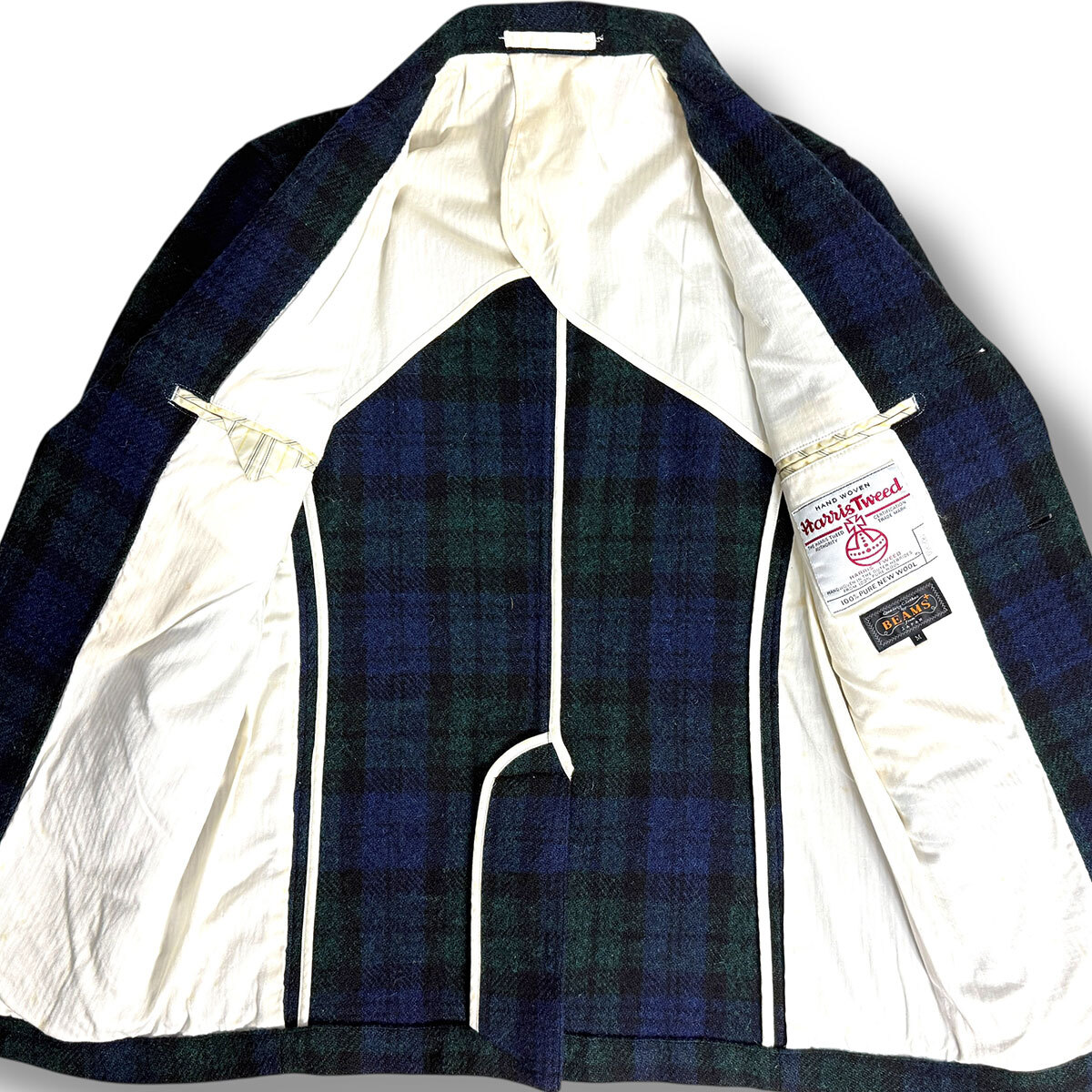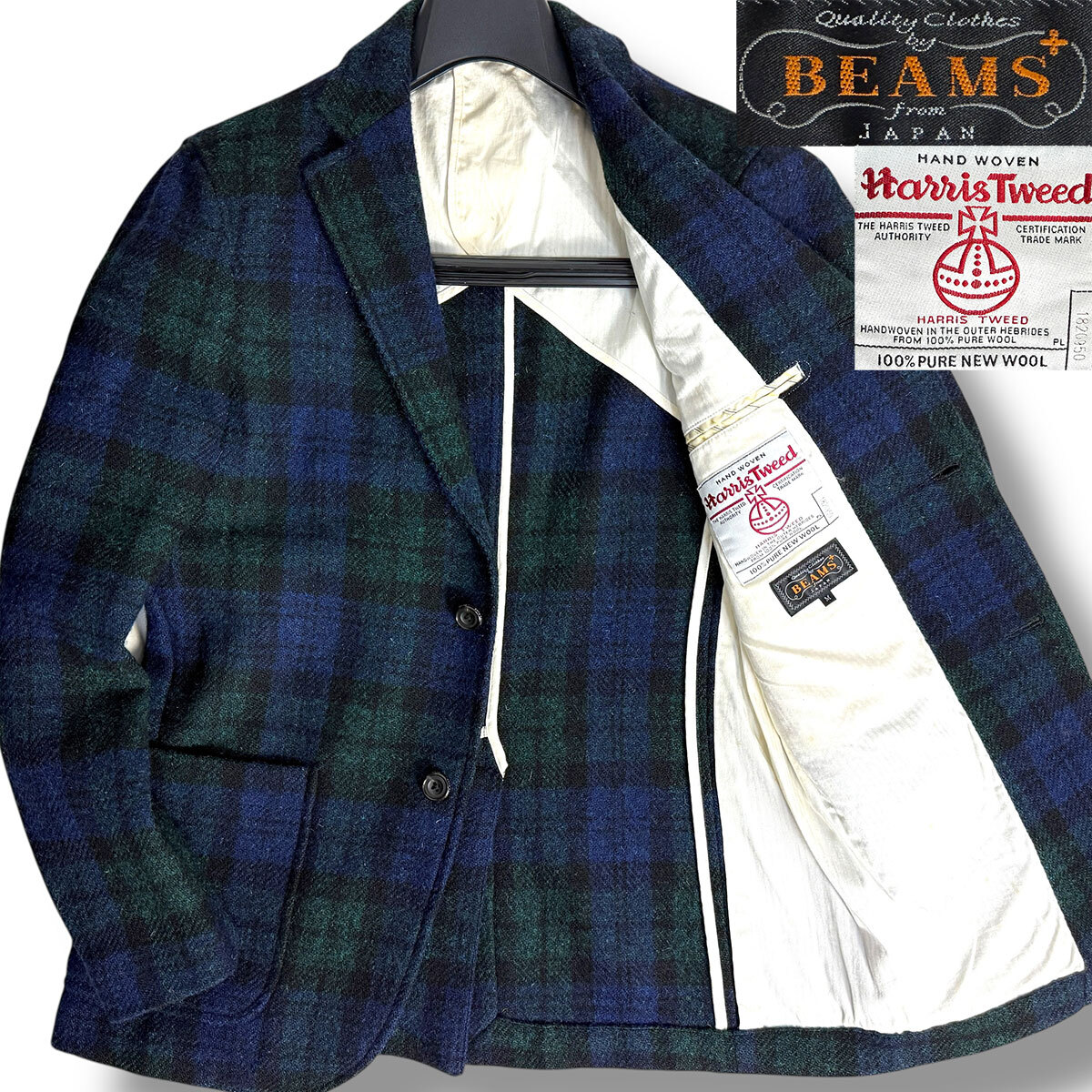 J6351 美品 ビームスプラス ハリスツイード ブラックウォッチ柄 テーラードジャケット M BEAMS PLUS
