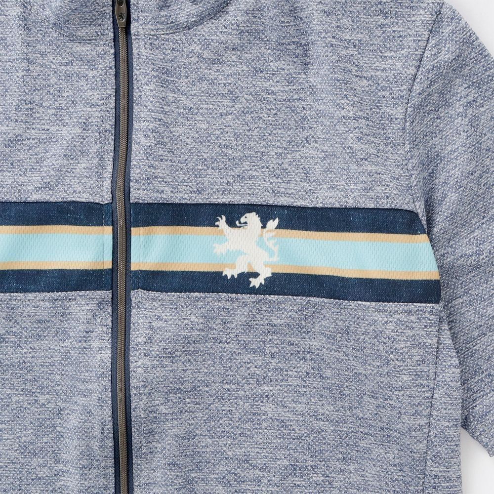 胸元にはチェレステカラーのボーダーラインを配置させることで統一感と爽やかさを両立したメリハリのあるジャージです。