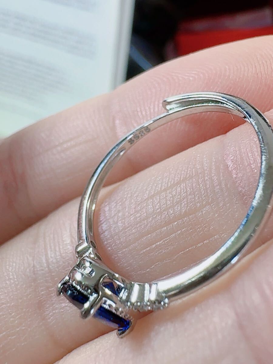 こちらの指輪は、贅沢な大きさの天然ルビーを、輝きをキープするロジウムコーティングの合金で4点留めしています。リングは調整可能タイプですので、サイズを気にせずお求めいだけます。
