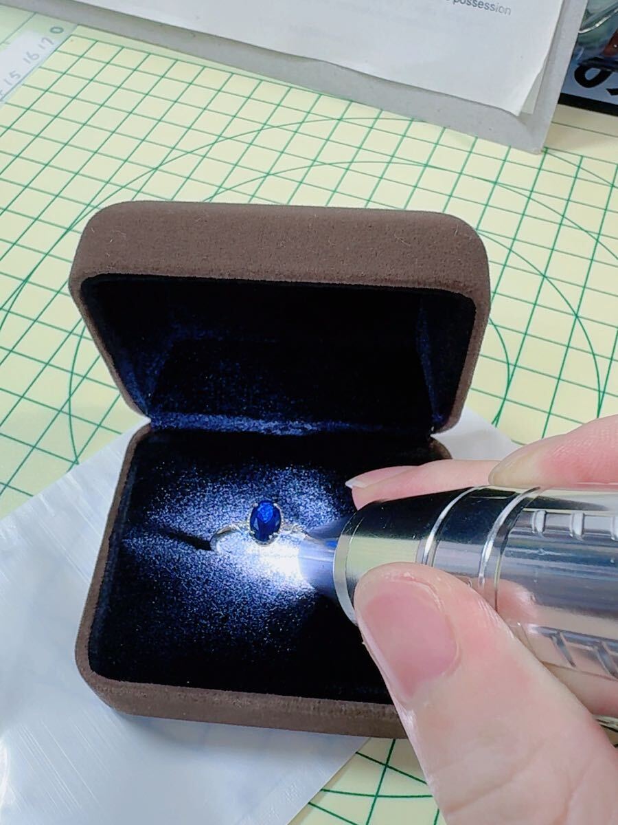 ブラックライト(紫外線ライトやUVライト)に反応して赤く(ルビー自身の色に)なります。