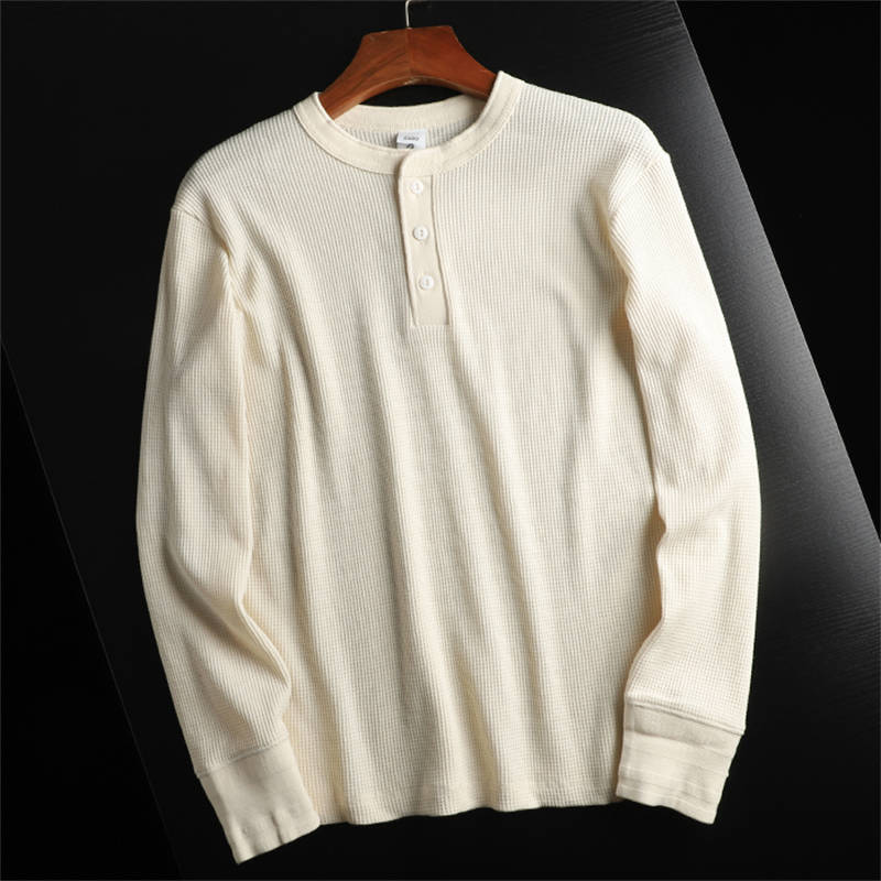 D0804-Lベージュ 長袖Tシャツ ヘンリーネック メンズ ニット プルオーバー インナー 秋冬 新品 カジュアル ワッフル カットソ トップス