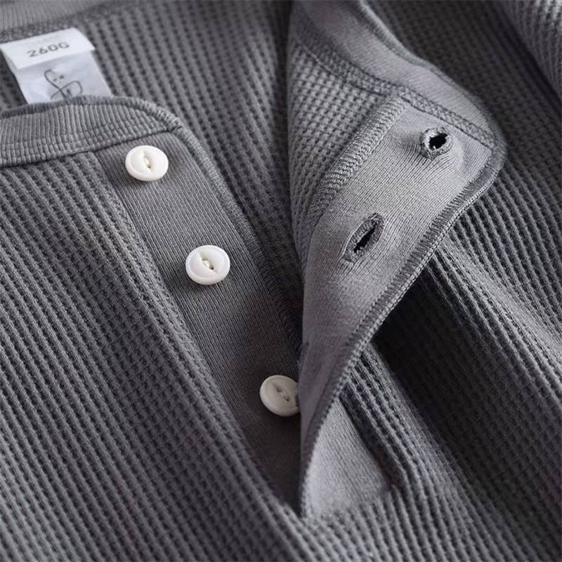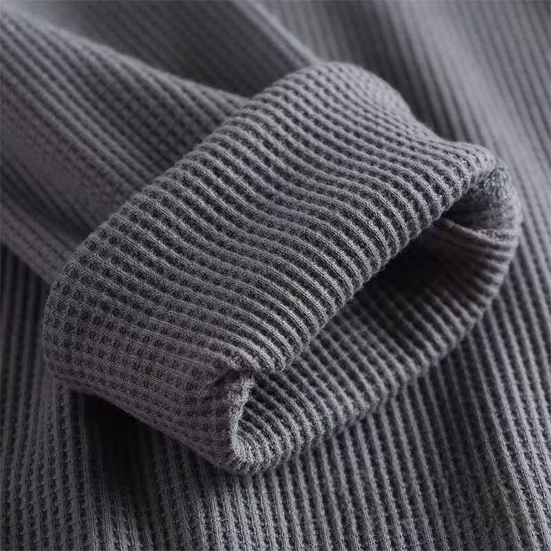D0804-Lベージュ 長袖Tシャツ ヘンリーネック メンズ 綿混 ニット プルオーバー インナー 通気性 秋冬 新品 カジュアル ワッフル カットソ トップス