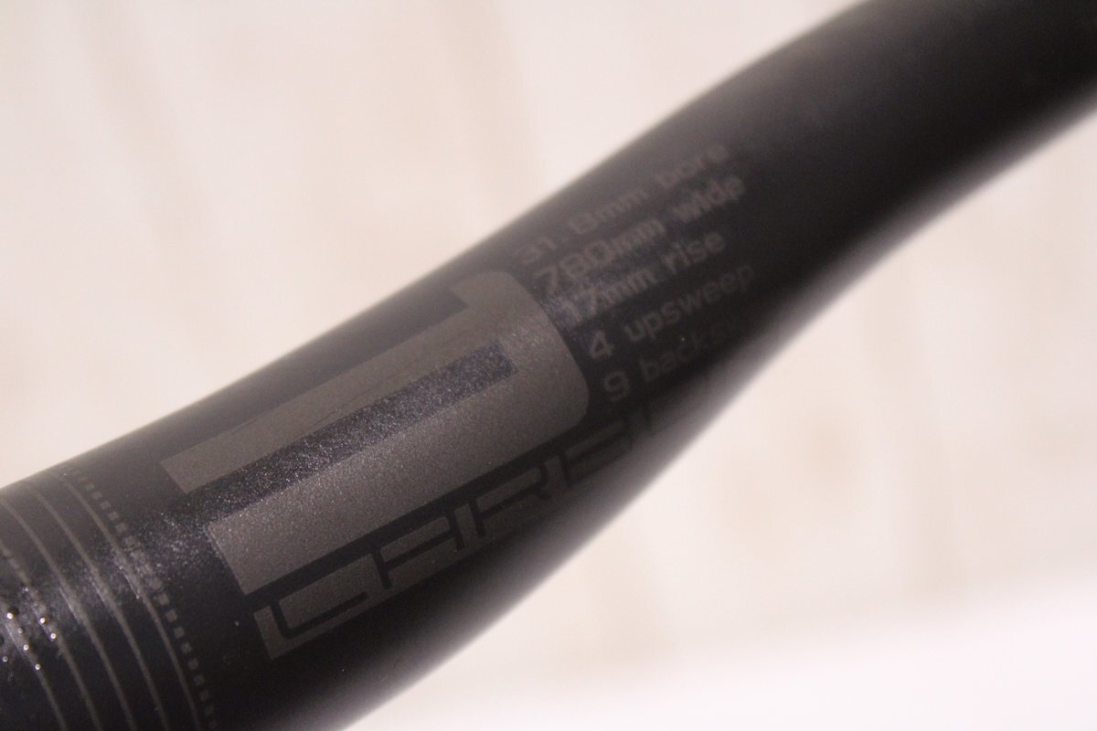 仕様 | クランプ径:Φ31.8mm 計測重量(掲載写真状態): 205g メーカーサイズ: ハンドル幅 : 600mm(カットあり) ライズ:17mm バック9度 アップ4度 |