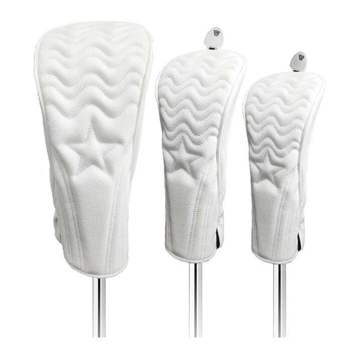 人気品高級PUレザー ゴルフヘッドカバー ドライバー用 440cc 460cc ウッド用 UT用 カバー スターSTAR3点セット ホワイト