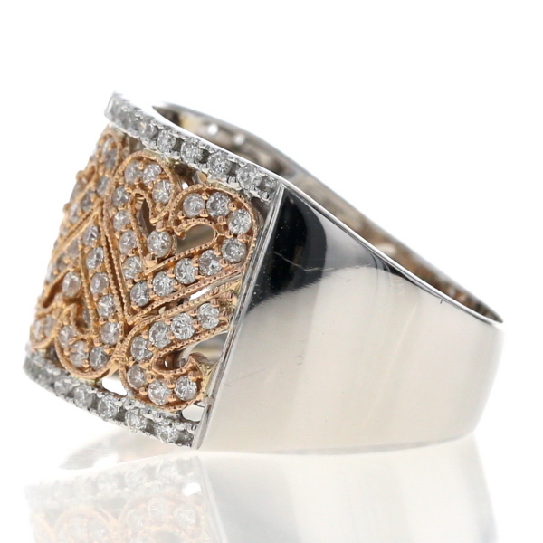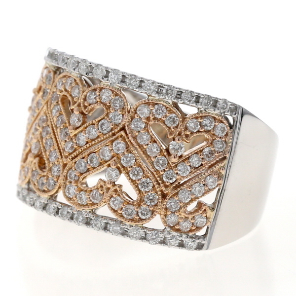 | 商品紹介 | K18ホワイトゴールドとピンクゴールドを使用した、ダイヤモンドリングです。 リングのトップには、合計1.00ctのダイヤモンドをハートモチーフにセッティング。 繊細な煌めきが寄り添い、可憐でありながらも華やかな存在感を放ちます。 ホワイトゴールドの上品な輝きと、ピンクゴールドの柔らかな色合いが調和したデザイン。 愛らしさと大人のエレガンスを兼ね備えた、特別なジュエリーです。 |