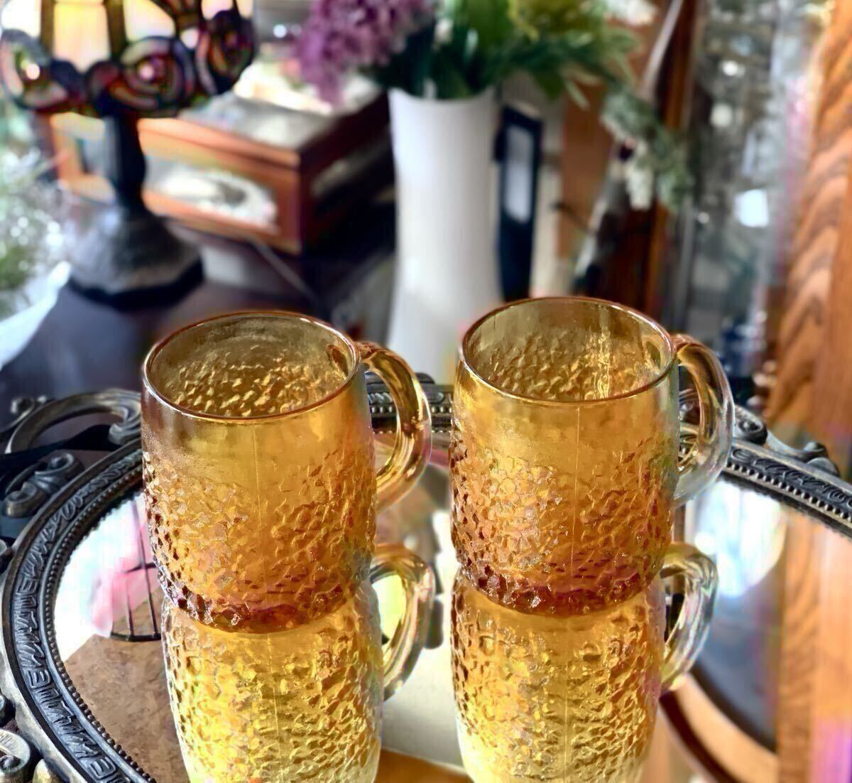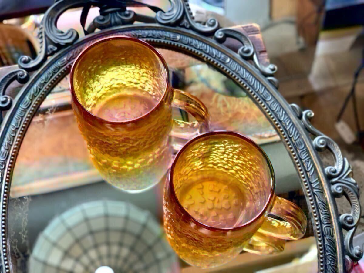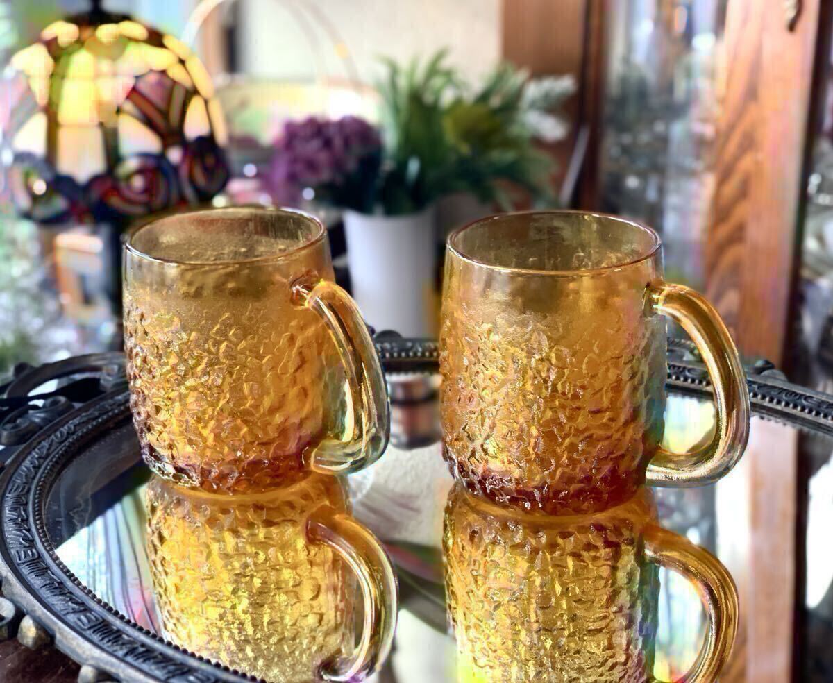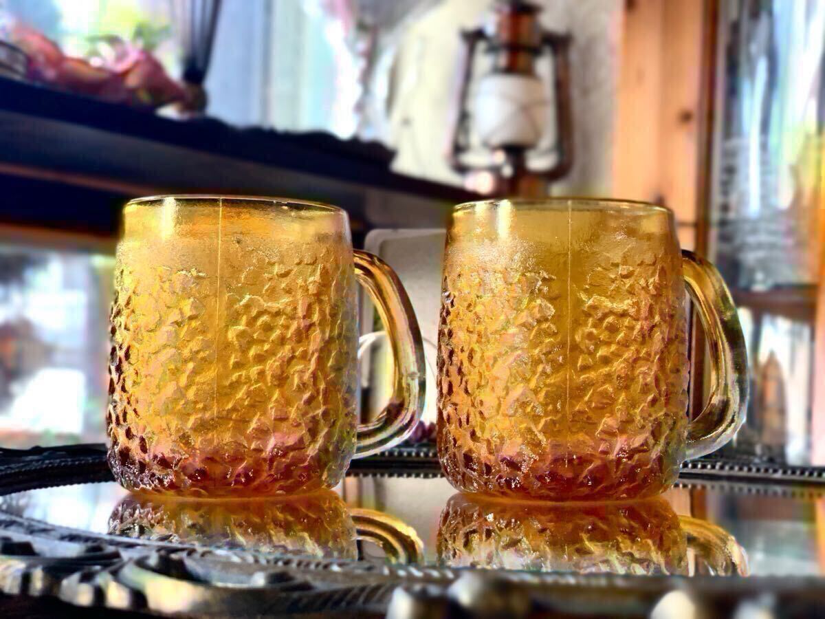 昭和レトロなアンバーのペアジョッキです