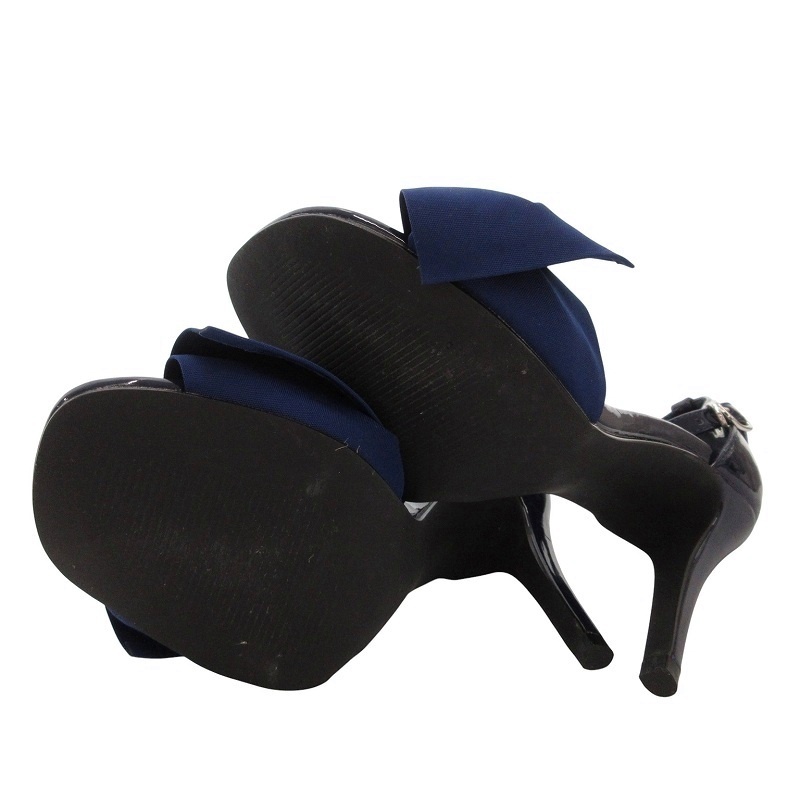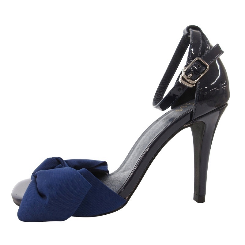 ランダ RANDA ミュール パンプス エナメル リボン アンクルストラップ S 紺 ネイビー /FF ■MET1 レディース