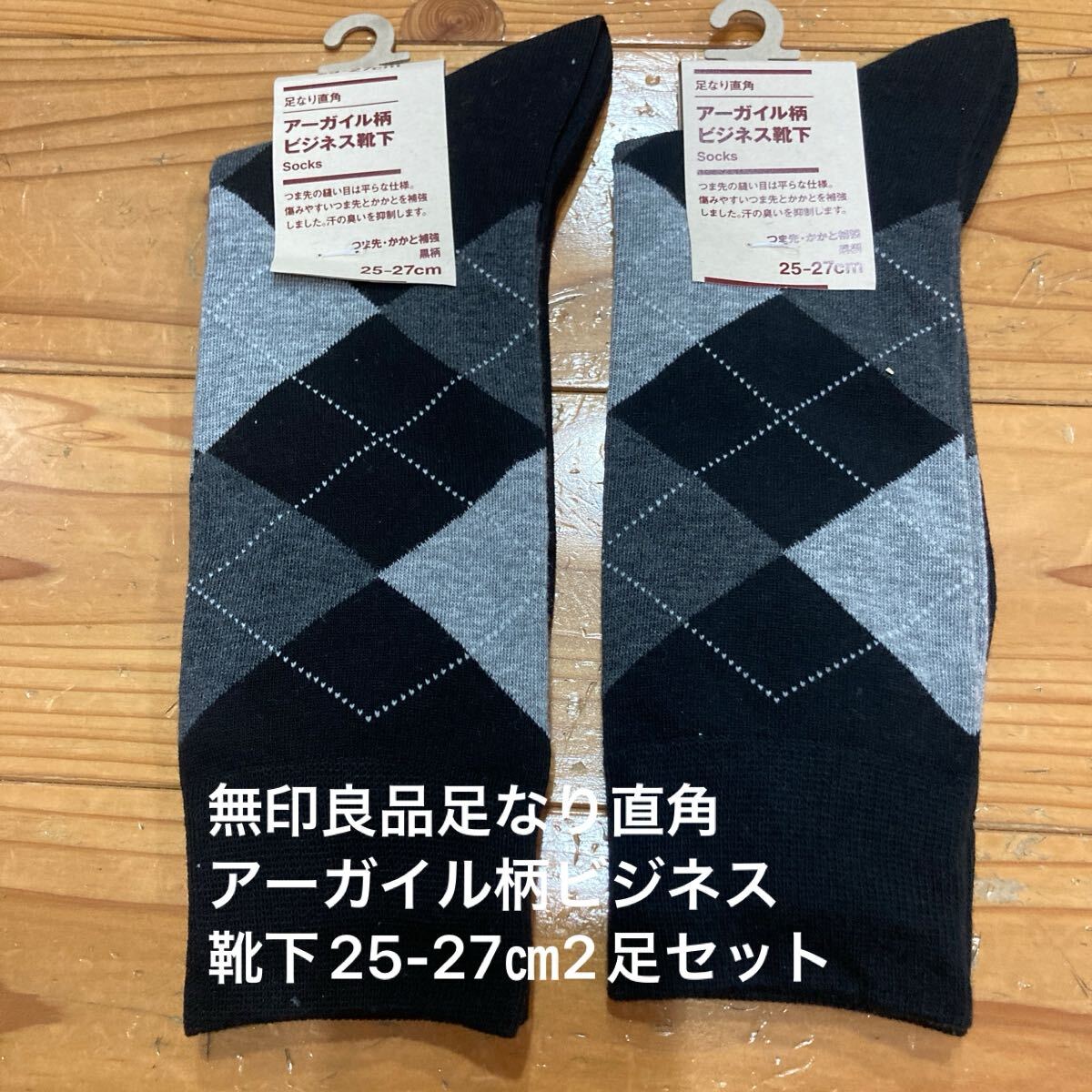 新品無印良品足なり直角アーガイル柄ビジネス靴下