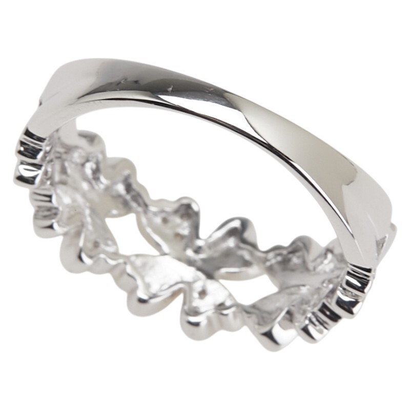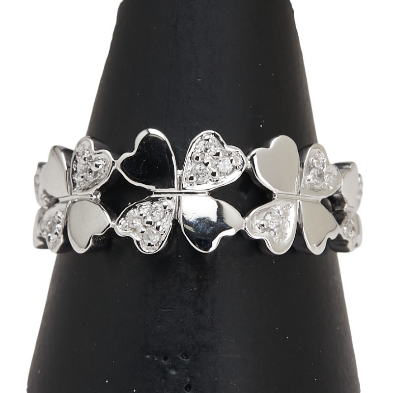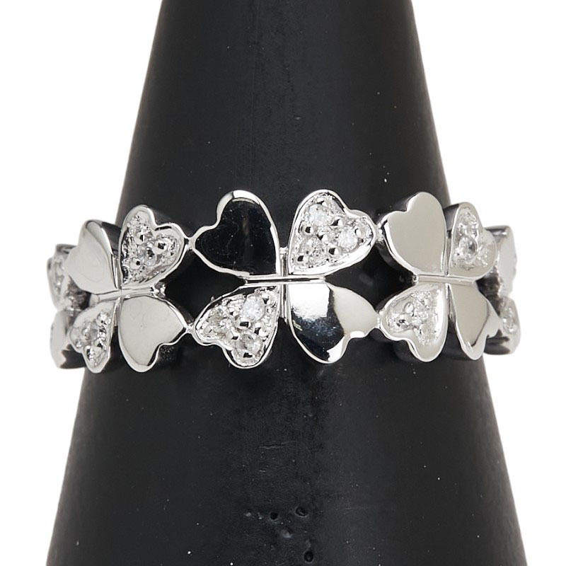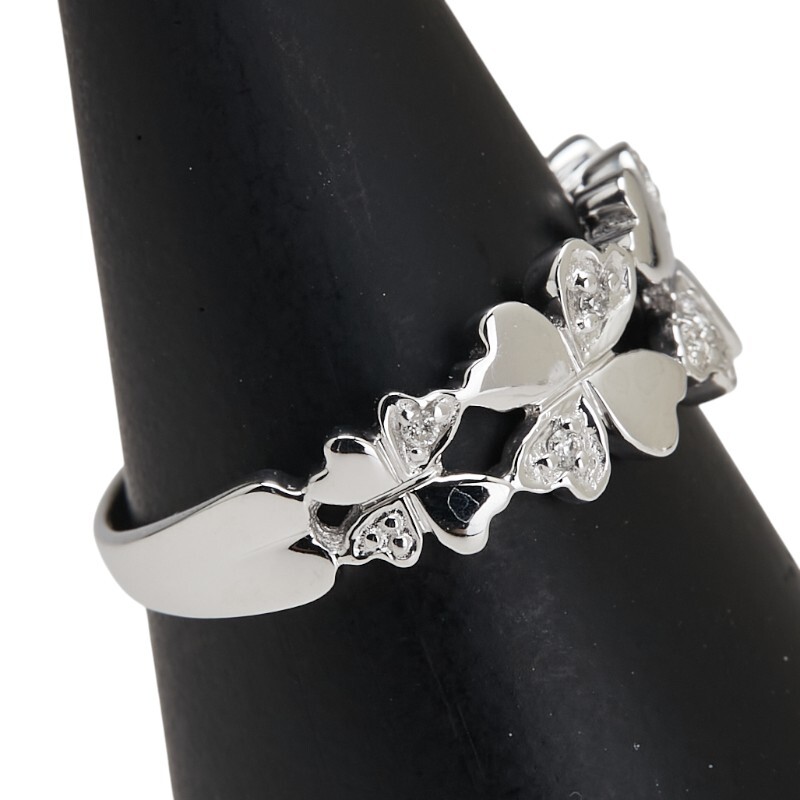 シルバー K18WG ホワイトゴールド ダイヤ0.07ct 四つ葉 クローバー モチーフ リング 指輪 #52 レディース 11.5号 中古