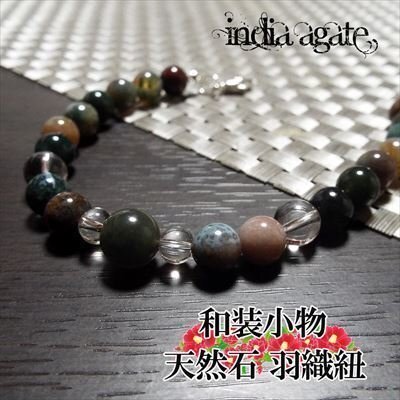 | 【STONE KITCHEN 天然石 パワーストーン】 着物や帯だけでなく、それらを彩る小物でもおしゃれを楽しみたい♪ 着物姿を華やかに彩るお洒落で存在感のある天然石の羽織紐です☆ お気に入りの羽織りもこちらの羽織紐を付ければイメージも気分もUP!! 着物スタイルをドレスアップしてくれます。 奥ゆかしくも凛とした表情を際立たせる、伝統的な和の装い。細部までオシャレにこだわれば上品さも際立ちます♪ 取り付け留め具は初心者の方でも簡単なカニカンになります。 【サイズ】全長 約23cm 玉サイズ:水晶 約8mm・約6mm 天然石各種 約10mm・約8mm 留め具:カニカン インド瑪瑙 1点 注意事項 ※金属部分は汗や汚れ等で変色する場合がございます。気になる場合は 金属磨きや布等で軽くふき取る事をおすすめします。 ※石の種類によっては、艶を引き出すことを目的として、ワックスや着色加工がされているものもあります。 ※表示のサイズは必ずしも最大値・最小値のサイズのものが入っているわけではございません。 ※天然石のため同じものでも色味・模様などが異なります。 ※照明の具合で実際とは色合いが異なる場合がございます。 また、天然素材特有のクラック・内包物を有する場合がございます。予めご了承下さい。 | |
